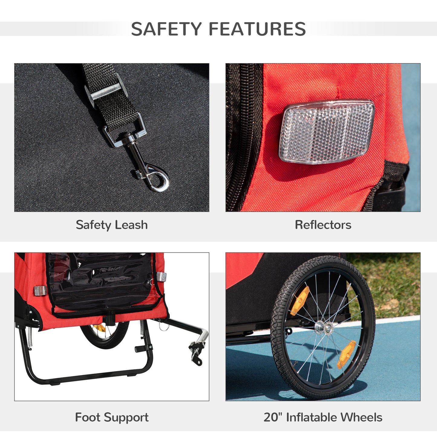 PawHut 2 in 1 Dog Bike Trailer Pet Stroller for Large Dogs with Hitch, Quick-release 20" Wheels, Pet Bicycle Cart Trolley Carrier for Travel, Red
