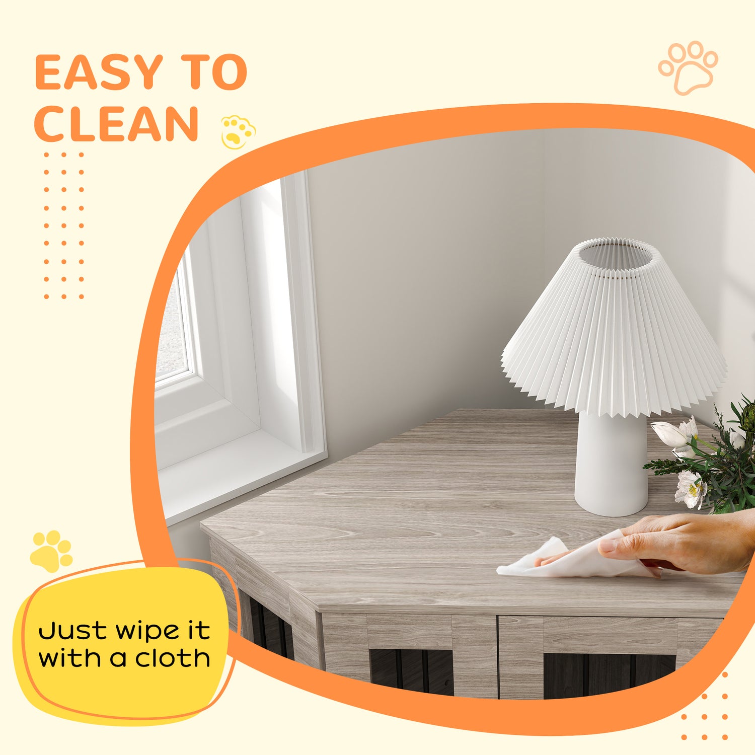 - Stylish appearance: Featuring a sleek brown walnut wood grain finish, this dog crate effortlessly compliments your existing décor. Its minimalistic design adds a touch of sophistication to any room, making it a seamless addition to your home.