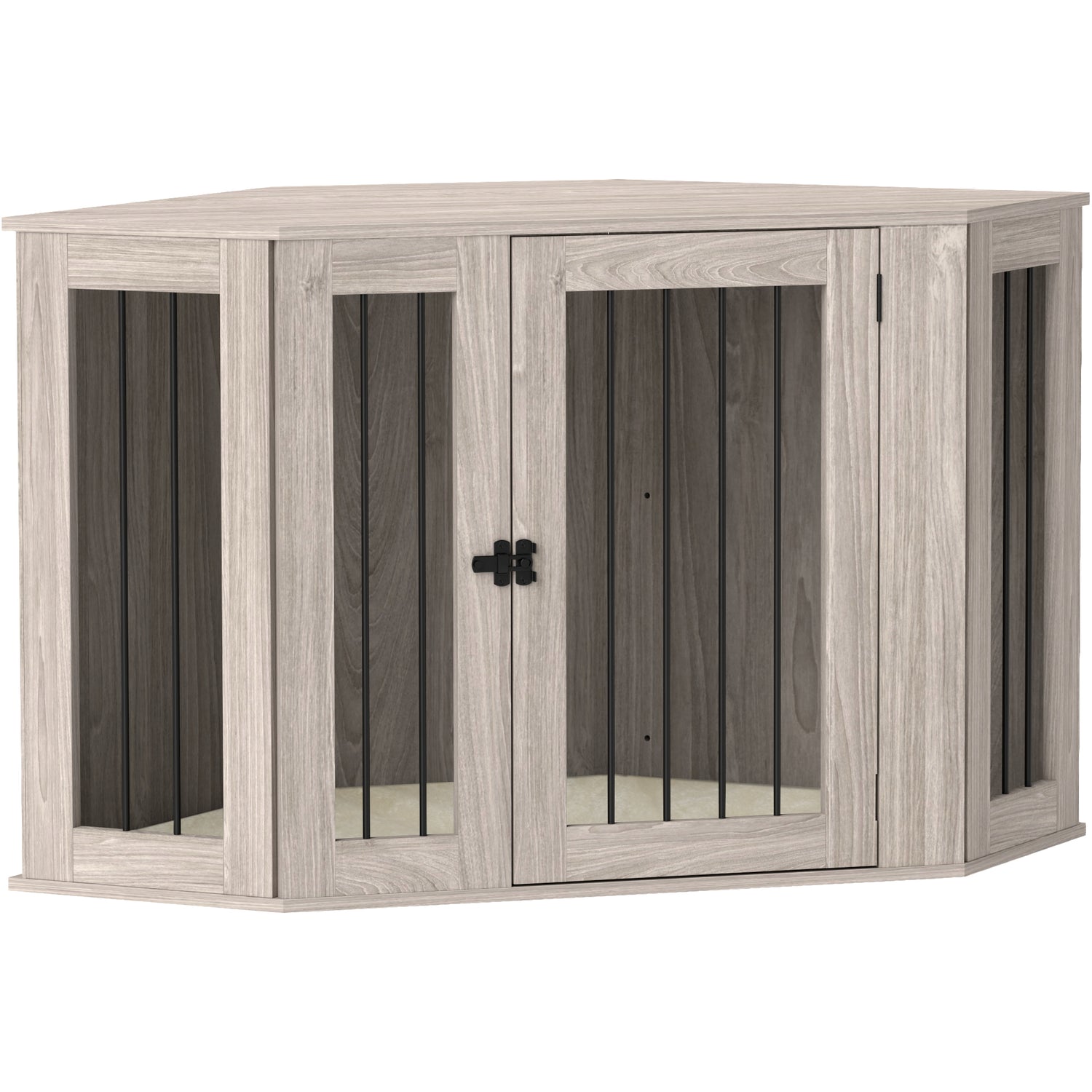 PawHut 2 in 1 Dog Crate Furniture Side Table, with Cushion, 122 x 61 x 71cm - Walnut Brown