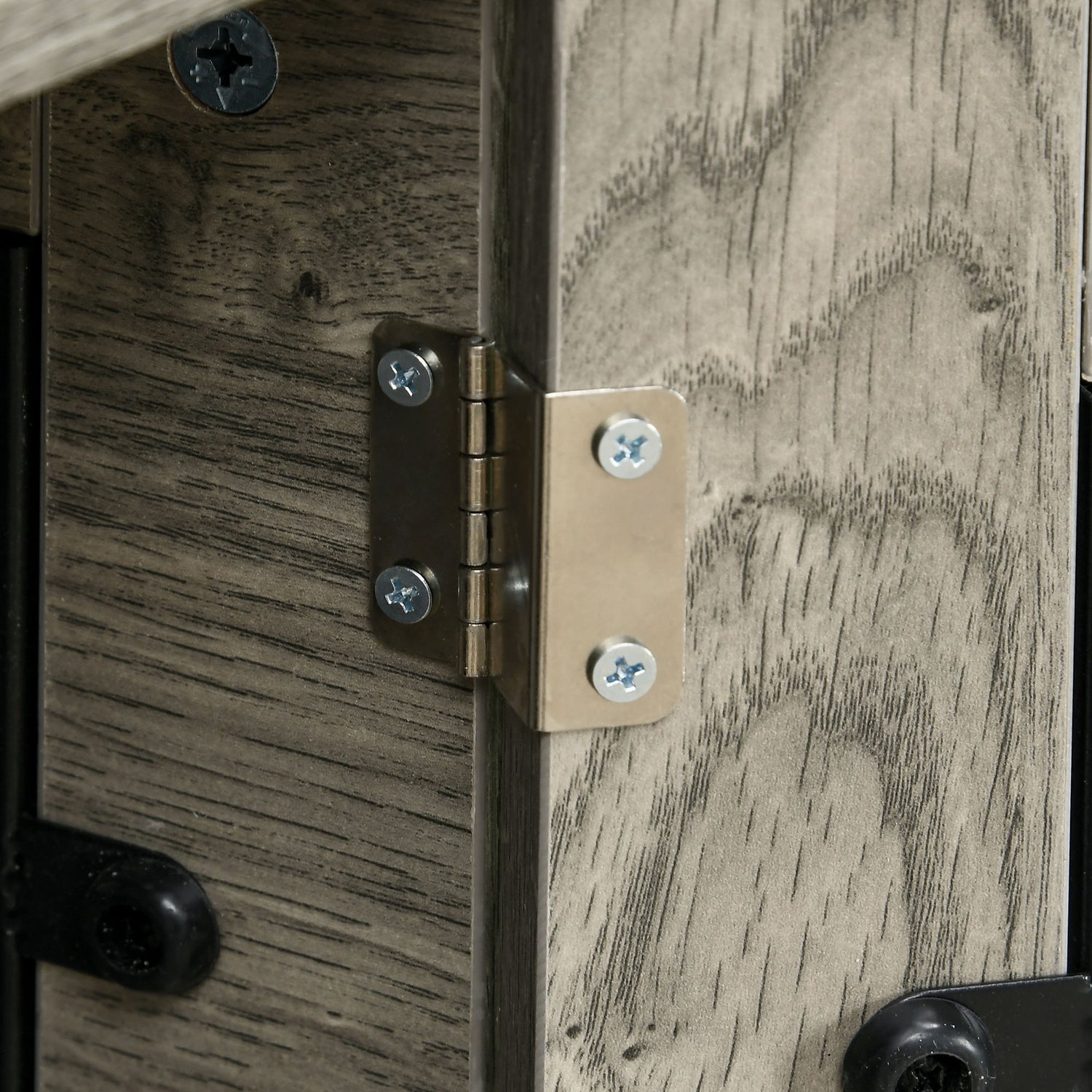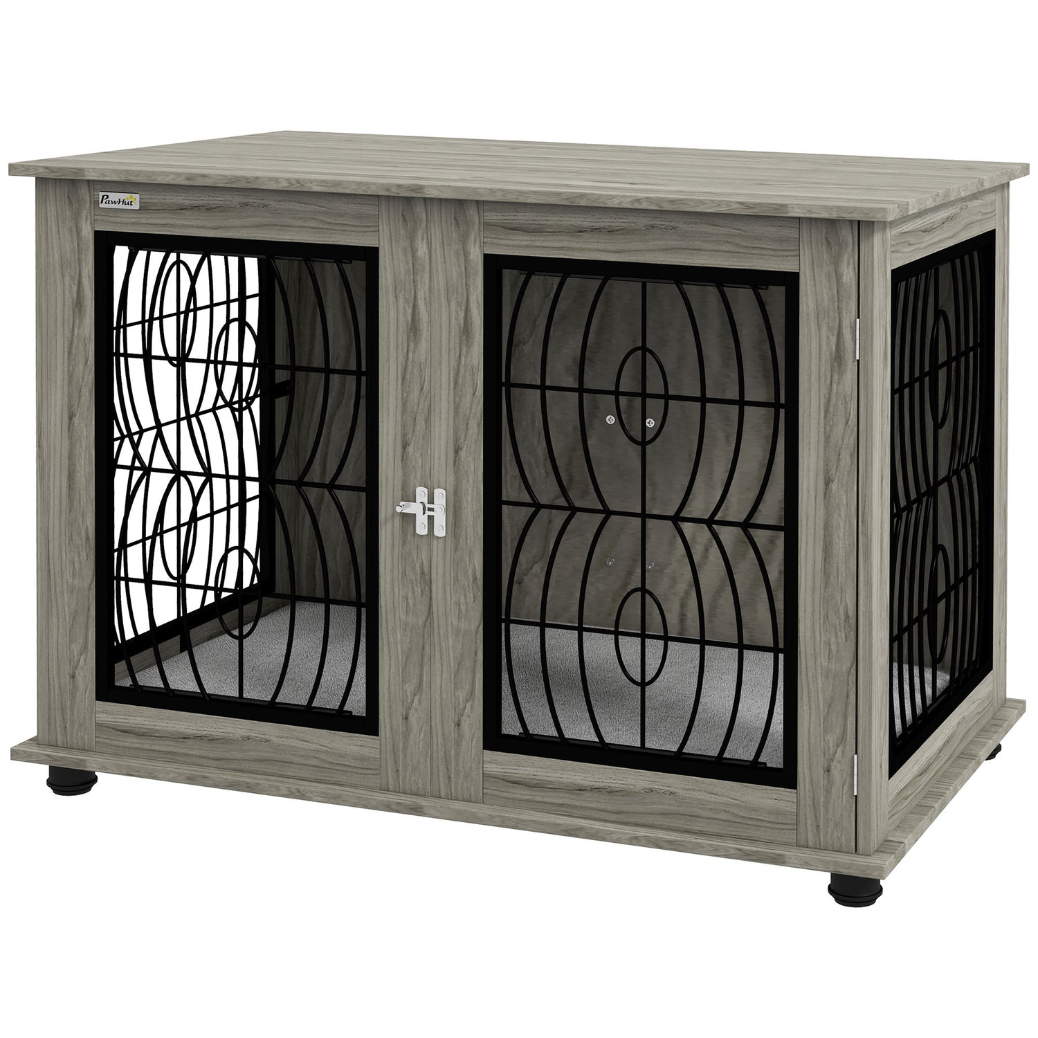 Discover the PawHut dog crate furniture, a chic blend of style and practicality for your home and furry friend. Doubling as a side table, this piece boasts a large tabletop for your decor, alongside a washable and soft cushion for your pet's comfort. The front door ensures security with its lock, while the wire mesh on three sides promotes lots of ventilation. Great for your furry friends, it's a cosy, stylish haven.