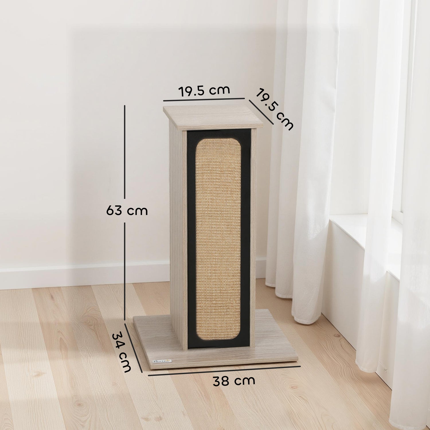 PawHut 63cm Cat Scratching Post, Cat Scratcher with Replaceable Scratching Board, Top Perch, Sisal Scratch Mat, Oak