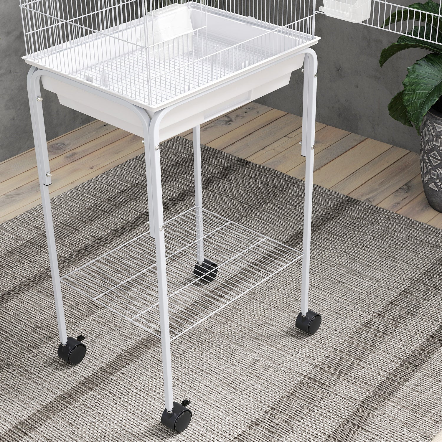 PawHut Bird Cage Budgie Cages for Finch Canary Parakeet with Stand Wheels Slide-out Tray Accessories Storage Shelf, White