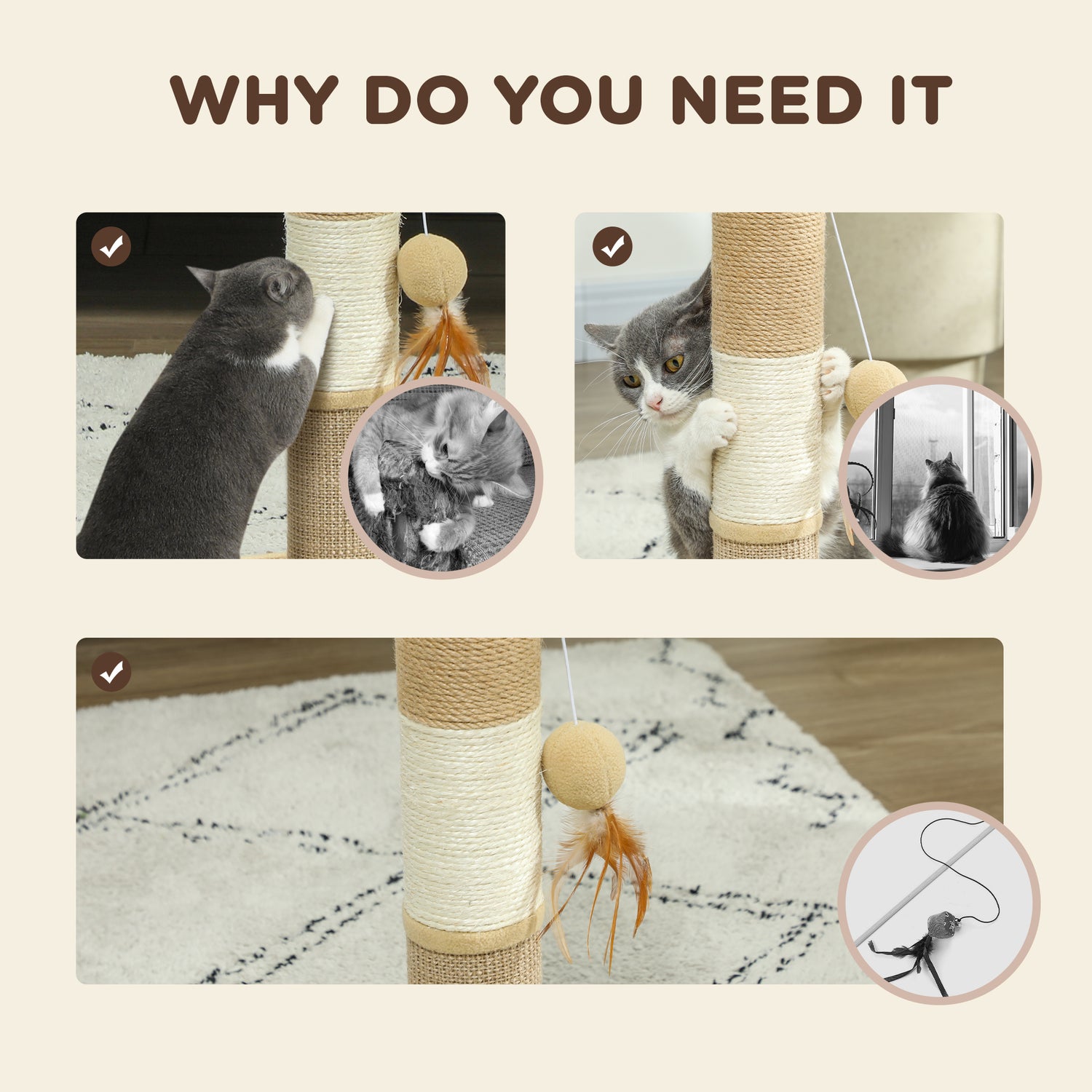 - Multi-texture scratching options: Features a cat scratching post wrapped in diverse materials—hessian fabric, sisal and jute—catering to your cat's urge to scratch and helping to protect your furniture.