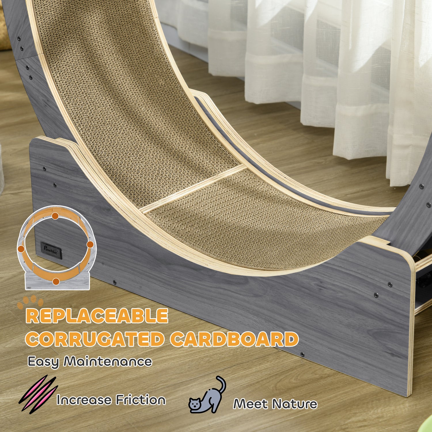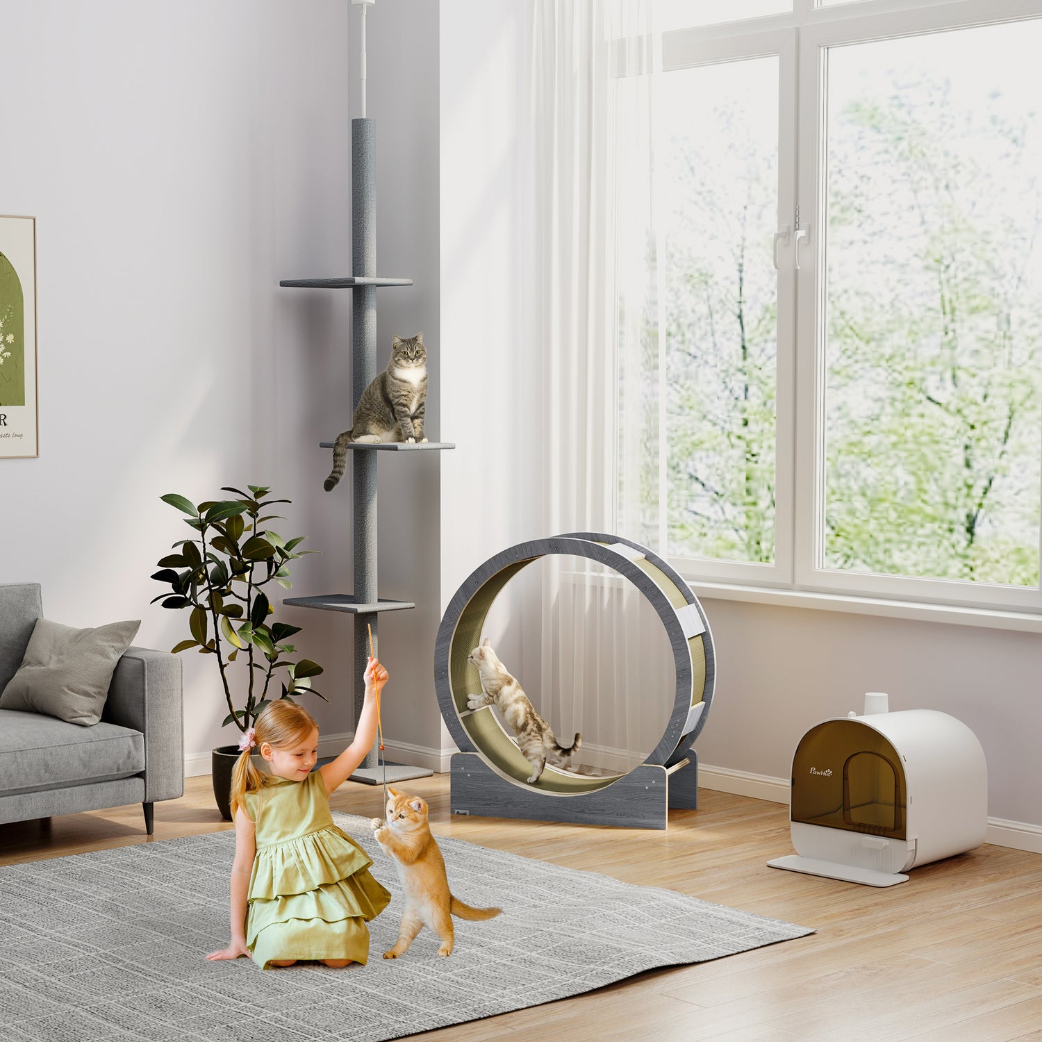 PawHut Cat Wheel with Brake, Scratching Pads - Grey