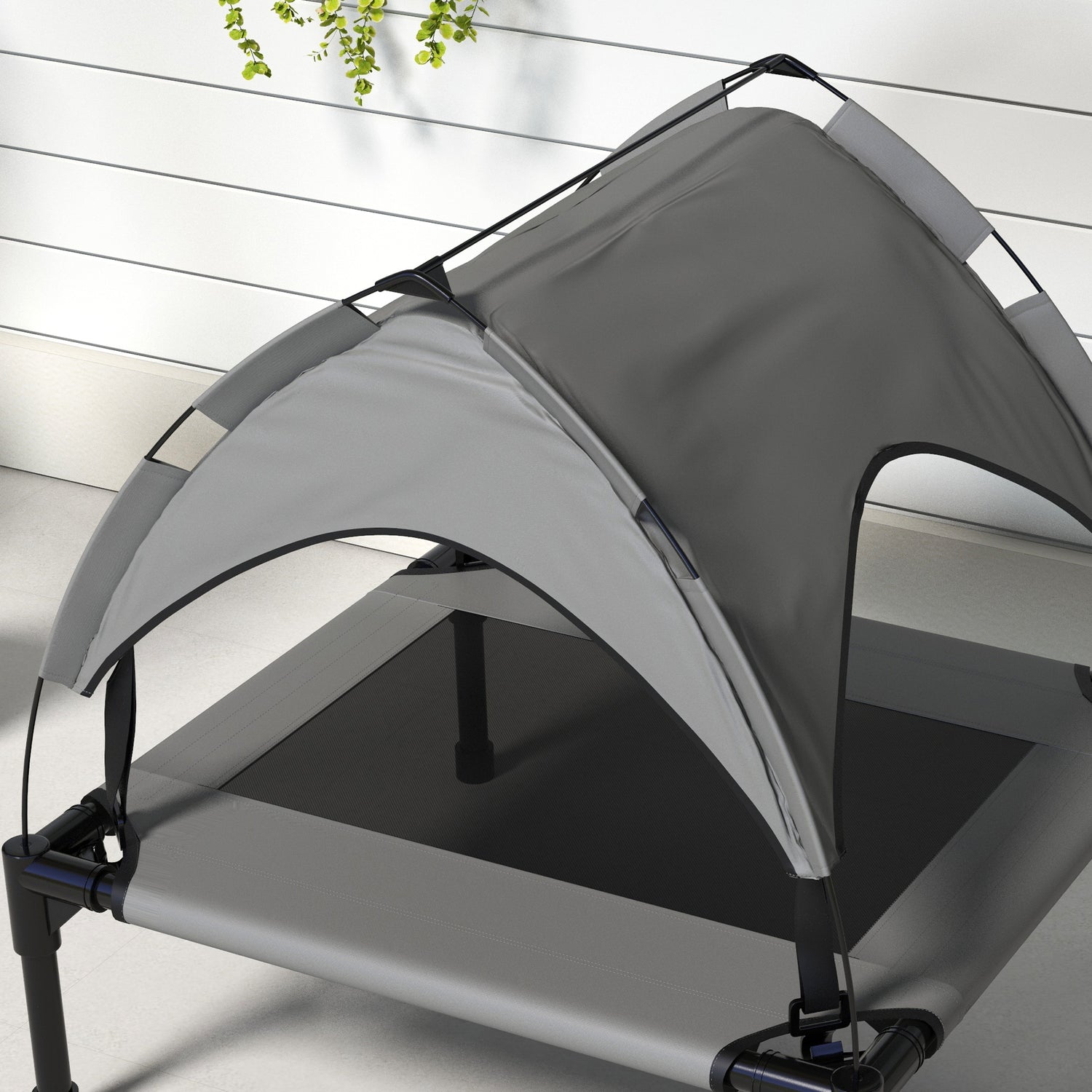 Spoil your pets with PawHut's elevated dog bed – the epitome of comfort and style. With a water and UV-resistant canopy, it shields your companion from sun and rain, whilst the mesh cover ensures optimal airflow, keeping them cool and cosy. Designed for relaxing outdoors, its raised base keeps them from the cold and dirty ground for maximum comfort. A luxurious retreat for pets to revel in, it's a must-have for all dog owners.