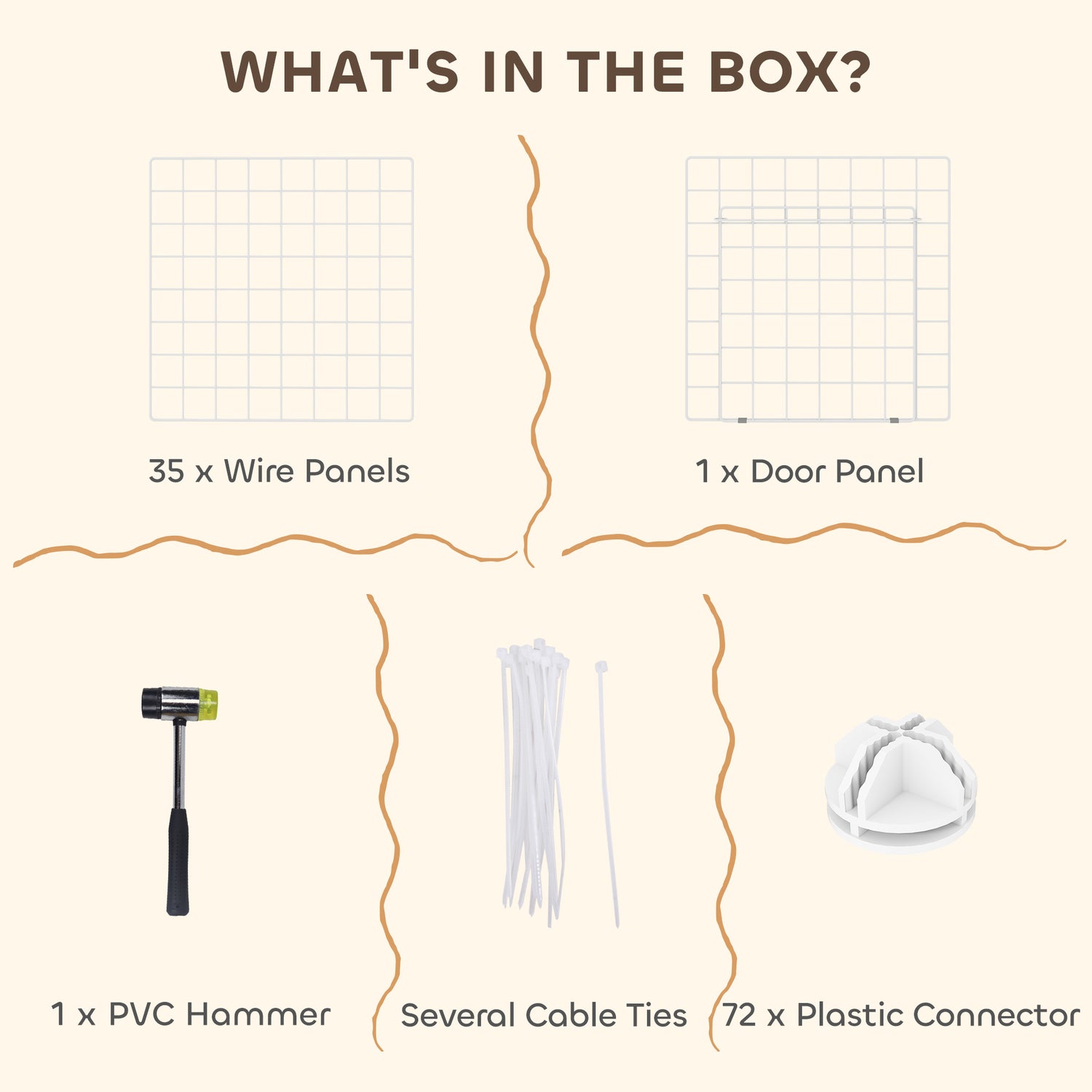 - Set of 36: Free-form panel design allows you to be in control of the size and shape of the c&c cage. Easy to assemble and disassemble, it doesn't have to be a permanent addition to your home.