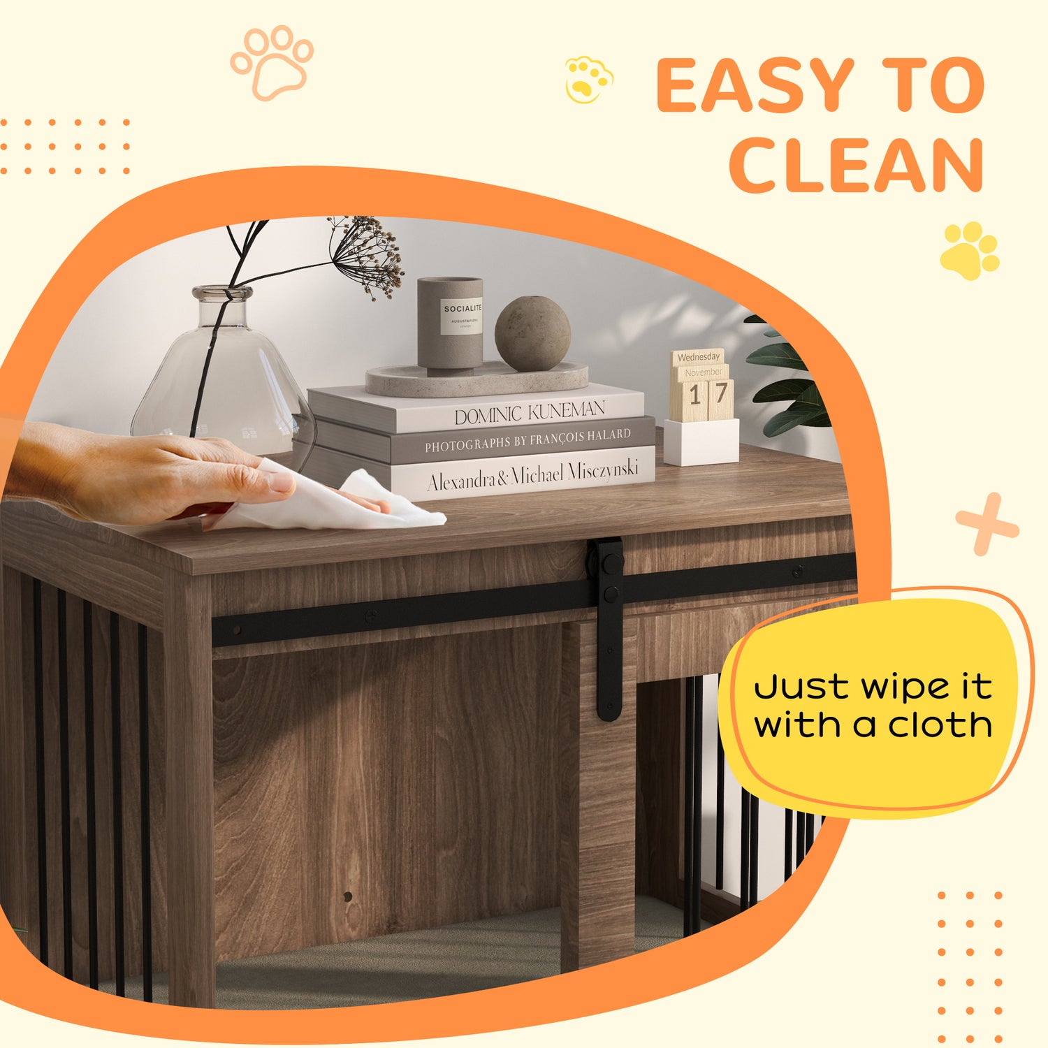 - Stylish: A chestnut wood effect appearance, this dog crate furniture blends beautifully with your home decor. There are spaced bars on three of the sides, keeping their space cool and comfortable.