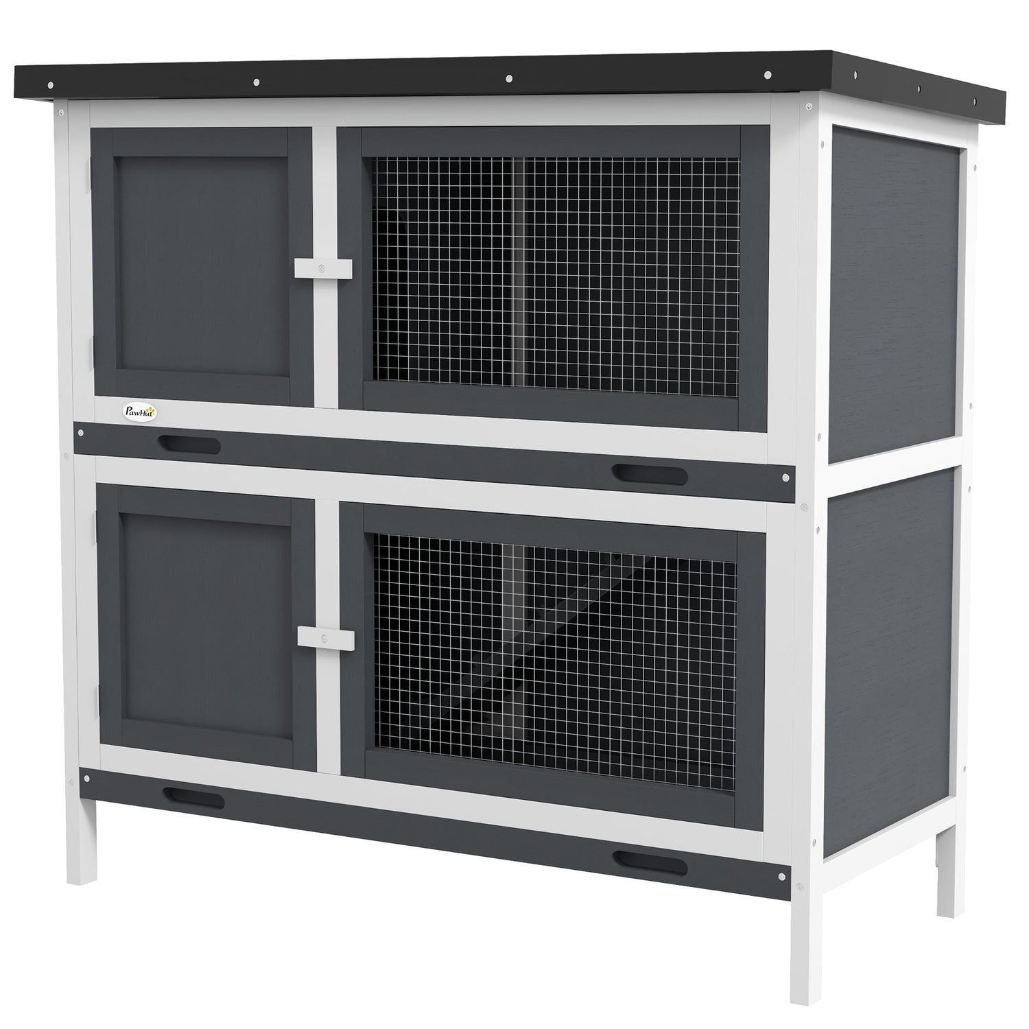 PawHut Double Decker Rabbit Hutch 2 Tier Guinea Pig House Pet Cage Outdoor with Slidingout Tray 100 x 47 x 91cm Grey