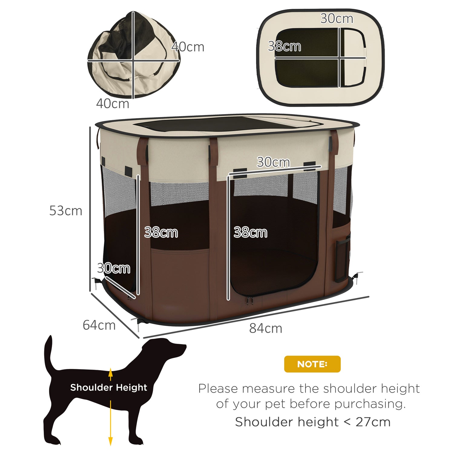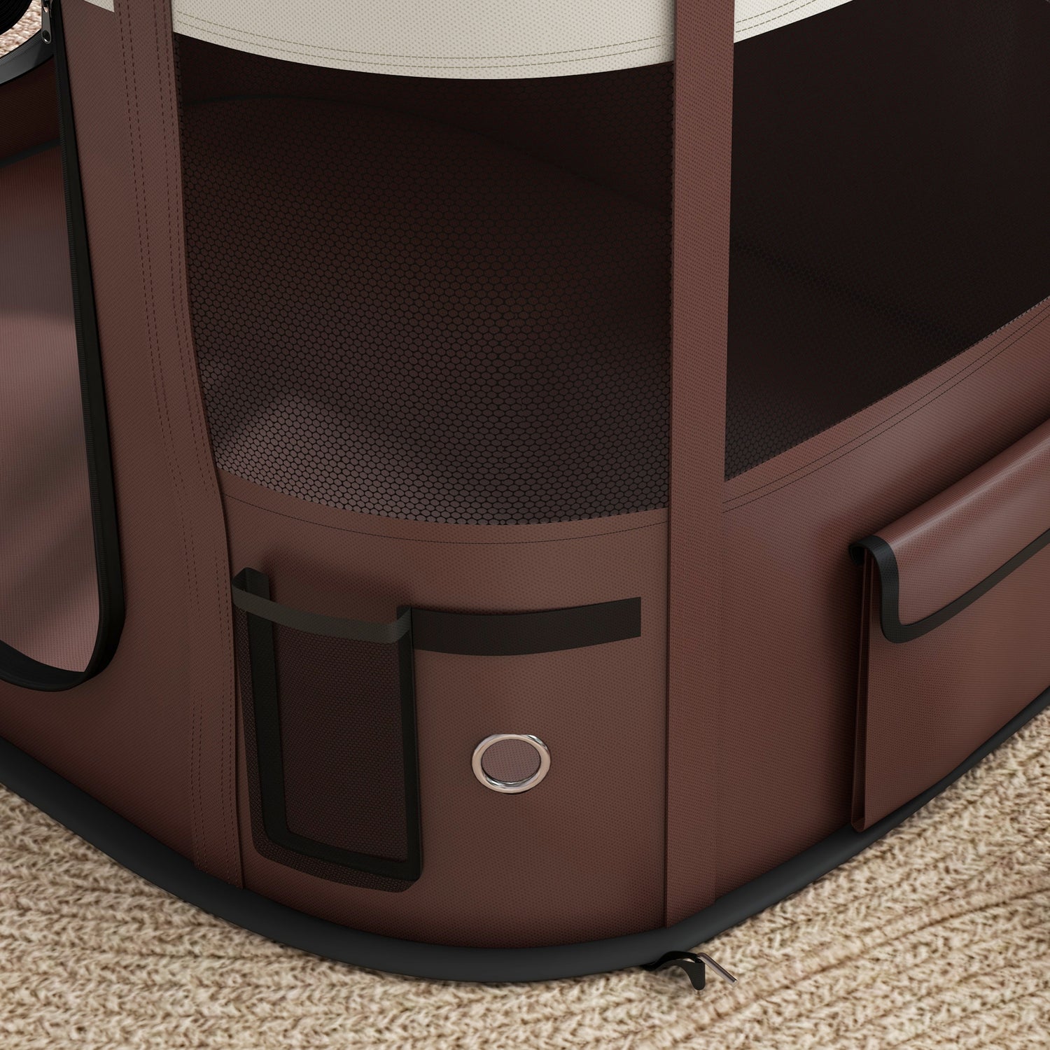 PawHut Foldable Dog Pen with Storage Bag for Indoor/Outdoor Use, Portable Pet playpen, with Ground Stakes - Brown