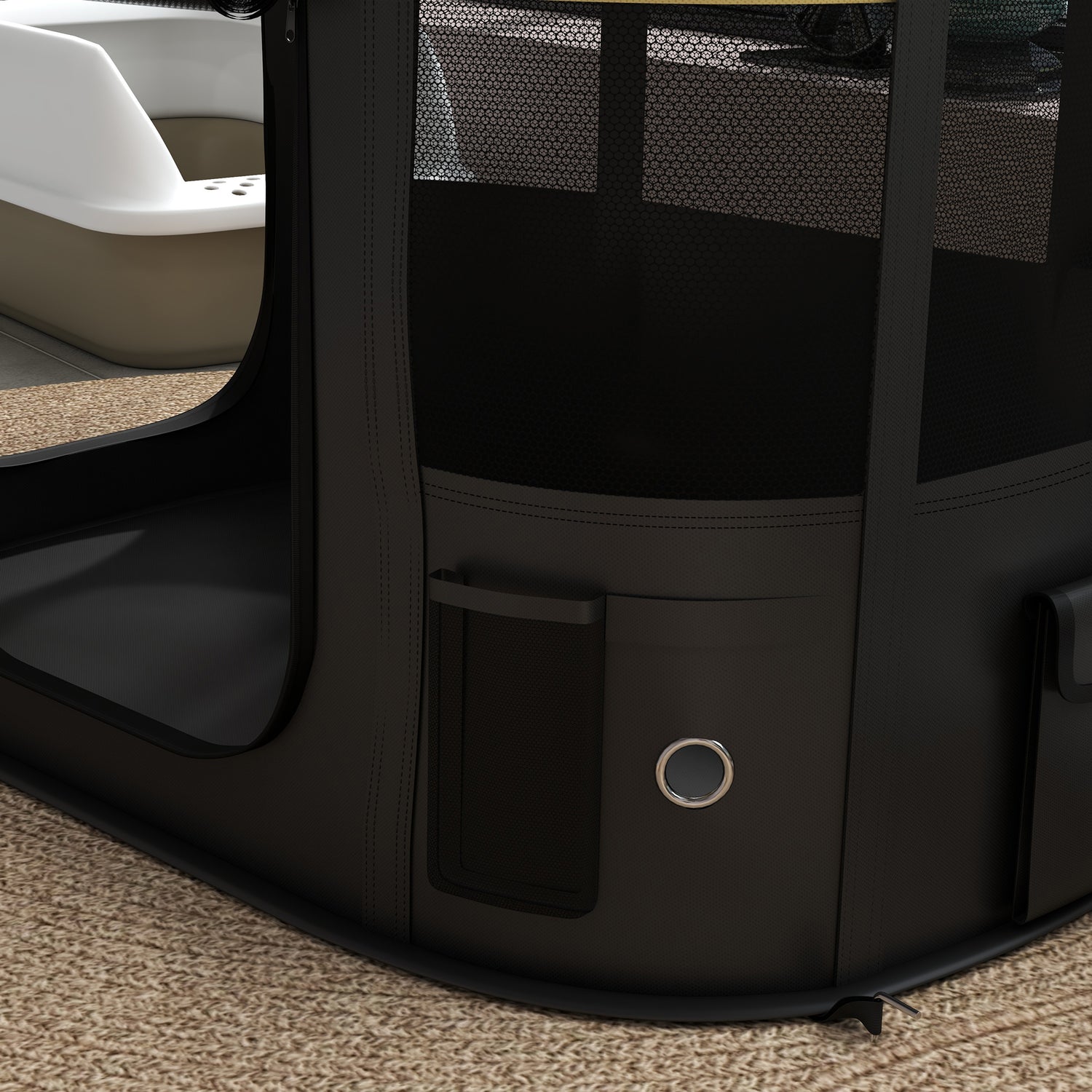 - Foldable: Fold this dog pen for space-saving storage and effortless travel. There are storage bags on the windows for keeping toys and essentials nearby.