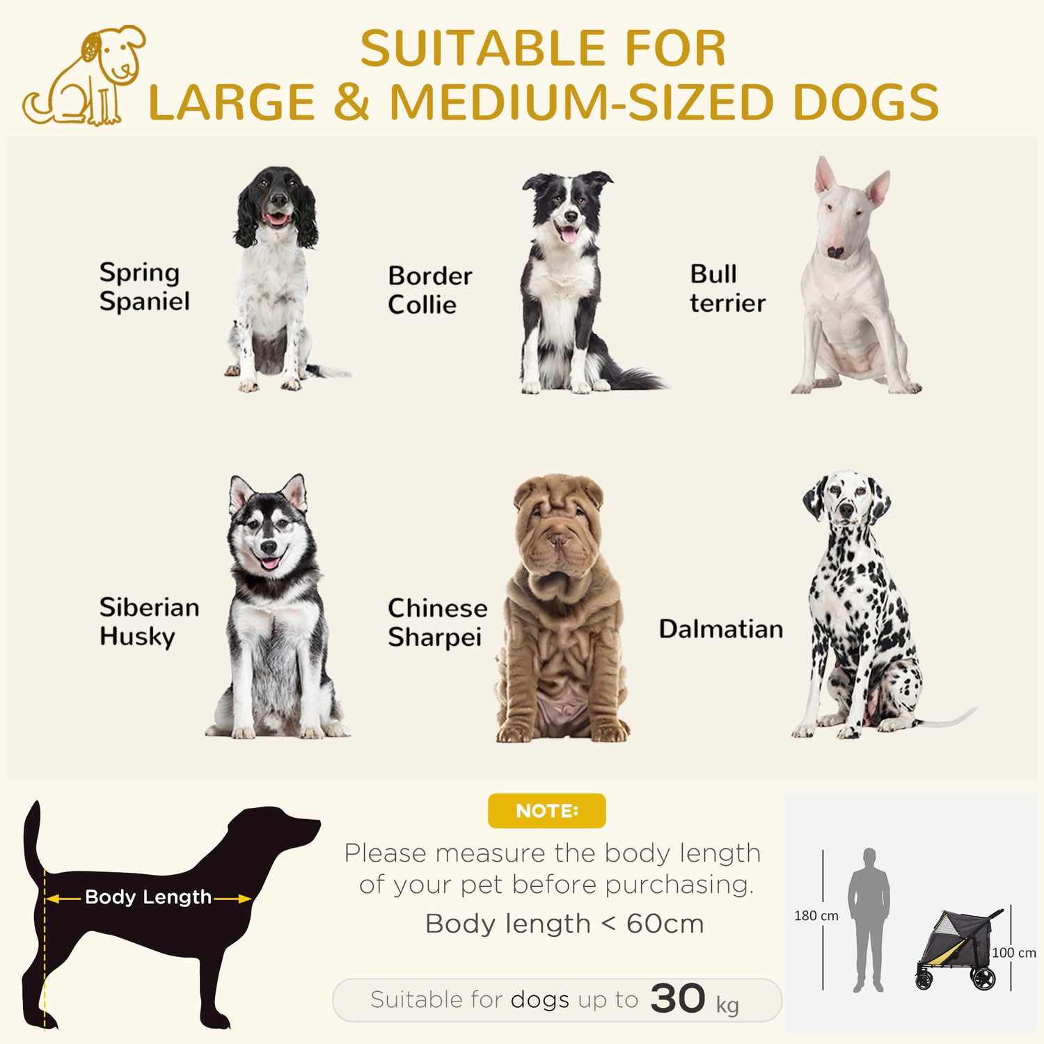 PawHut Foldable Pet Travel Stroller, Rain Cover, Mesh Window, Safety Leash, Storage Bags, Shock Absorber, for Large/Medium Dogs (Grey)