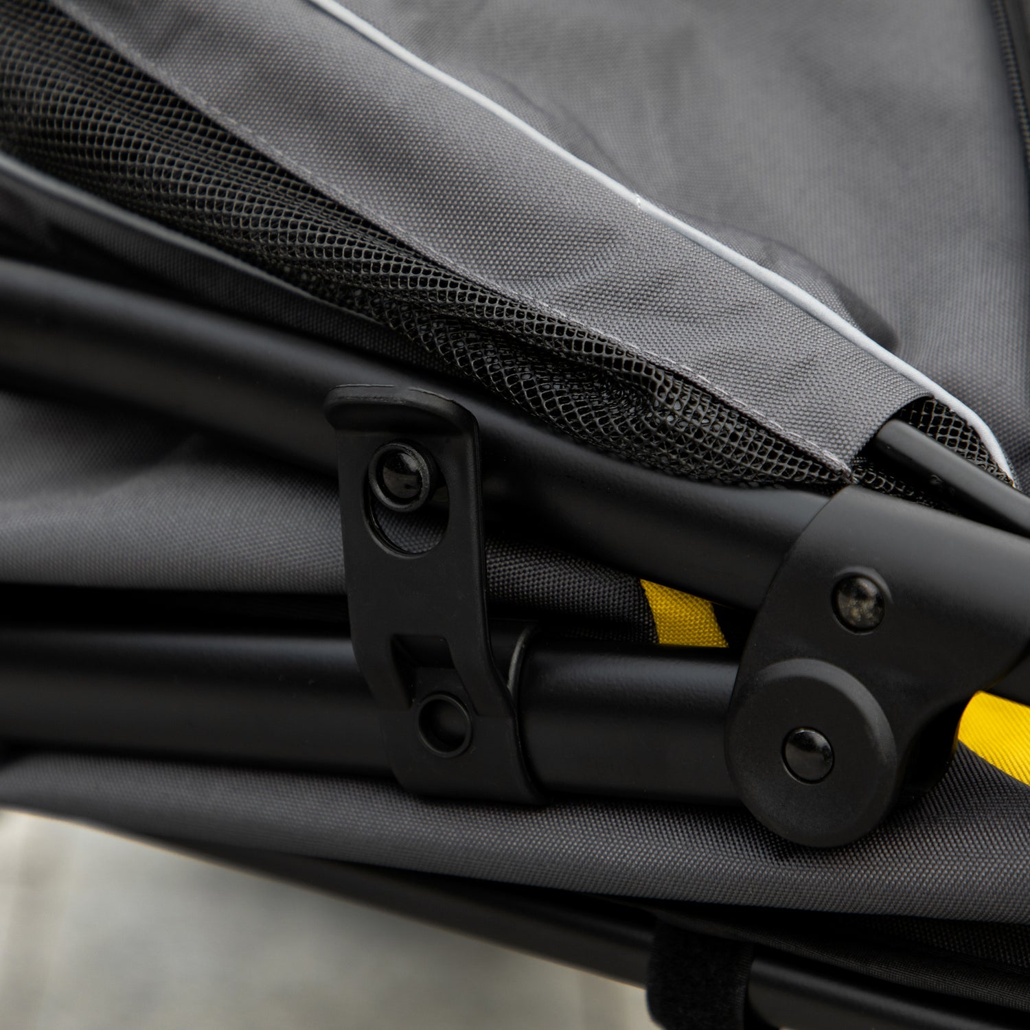 Going out should be smooth and simple for you and your pets – this PawHut pet stroller makes sure of it. They'll sit in this spacious buggy, enjoying the wind flow through the mesh windows, keeping them cool and comfortable. The leashes ensure they're secure, whilst the EVA wheels with shock absorbers make their ride a lot smoother. To prevent the bad weather from disrupting travel plans, we prepare the rain cover for this dog pram to make sure you travel great, have an adventure with PawHut!