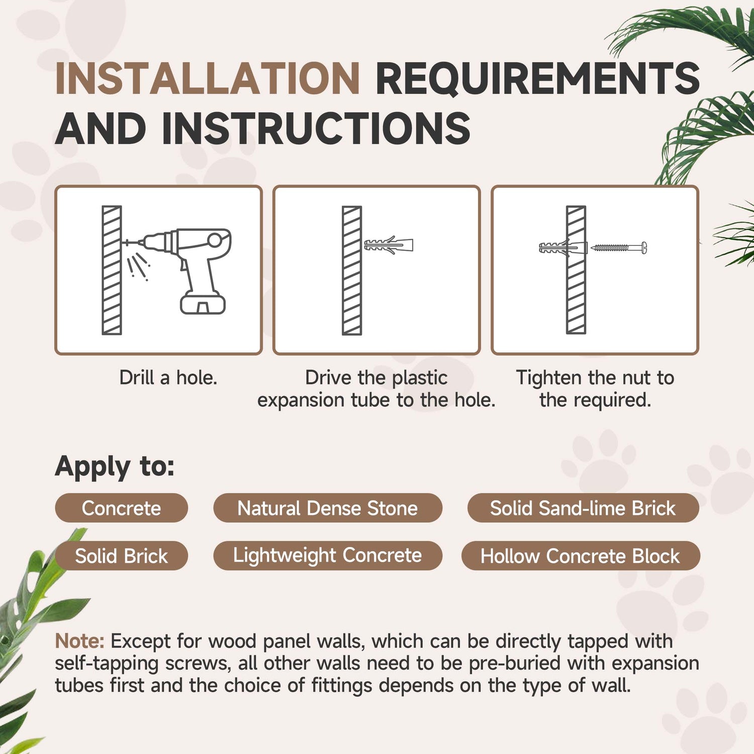 - Secure: Designed to be wall-mounted, this cat climbing wall includes pre-drilled holes with expansion tubes, providing a stable setup on most walls.