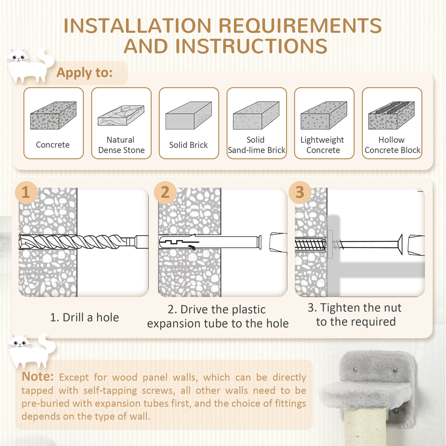 - Solid material: Made with multilayer board, this cat wall is stable, keeping them safe and supported.