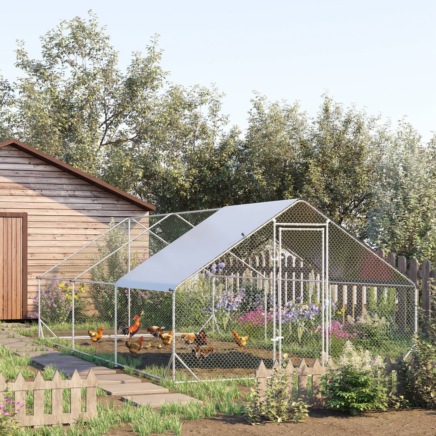 PawHut Galvanised Walk In Chicken Run w/ Cover 6 x 3 x 2m Silver