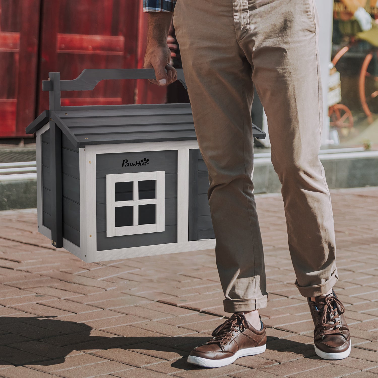 PawHut Indoor Rabbit Hutch, Portable Small Animal House Outdoor, with Top Handle, Openable Roof - Grey