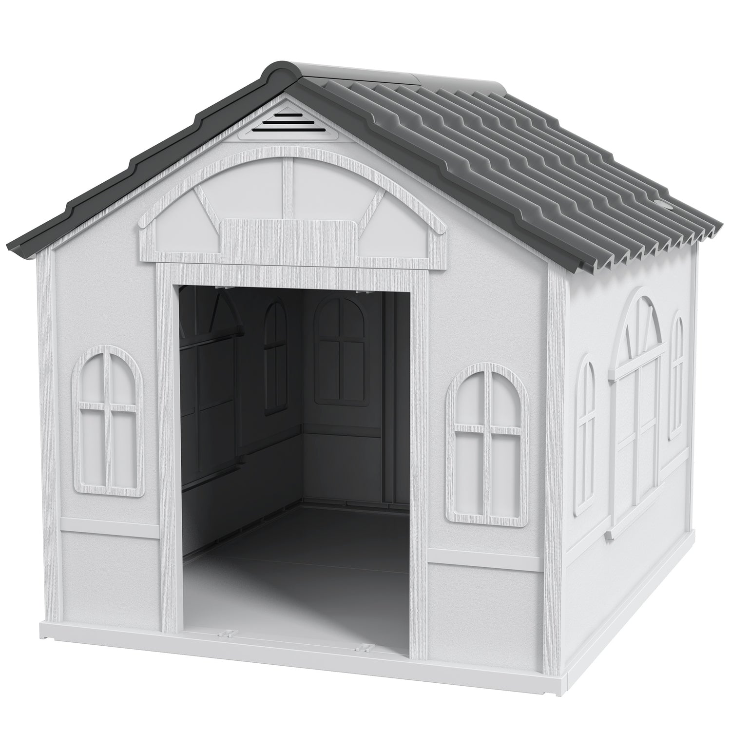 - Stylish appearance: This plastic dog kennel has cute window detailing for a fancy design. This dog kennel fits seamlessly in your garden, making your outdoor space inviting for pets.