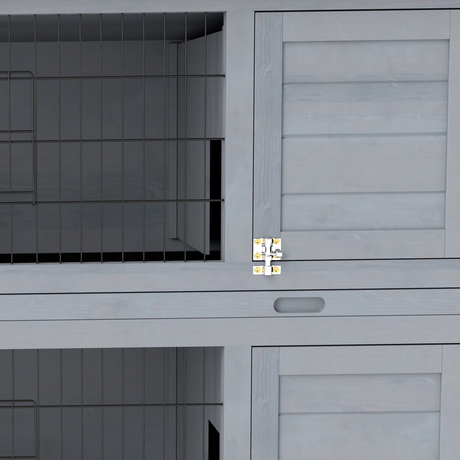 PawHut Rabbit Hutch Outdoor Guinea Pig Hutch Bunny Cage with No-Leak Trays, Divider, 136 x 50 x 93cm, Grey