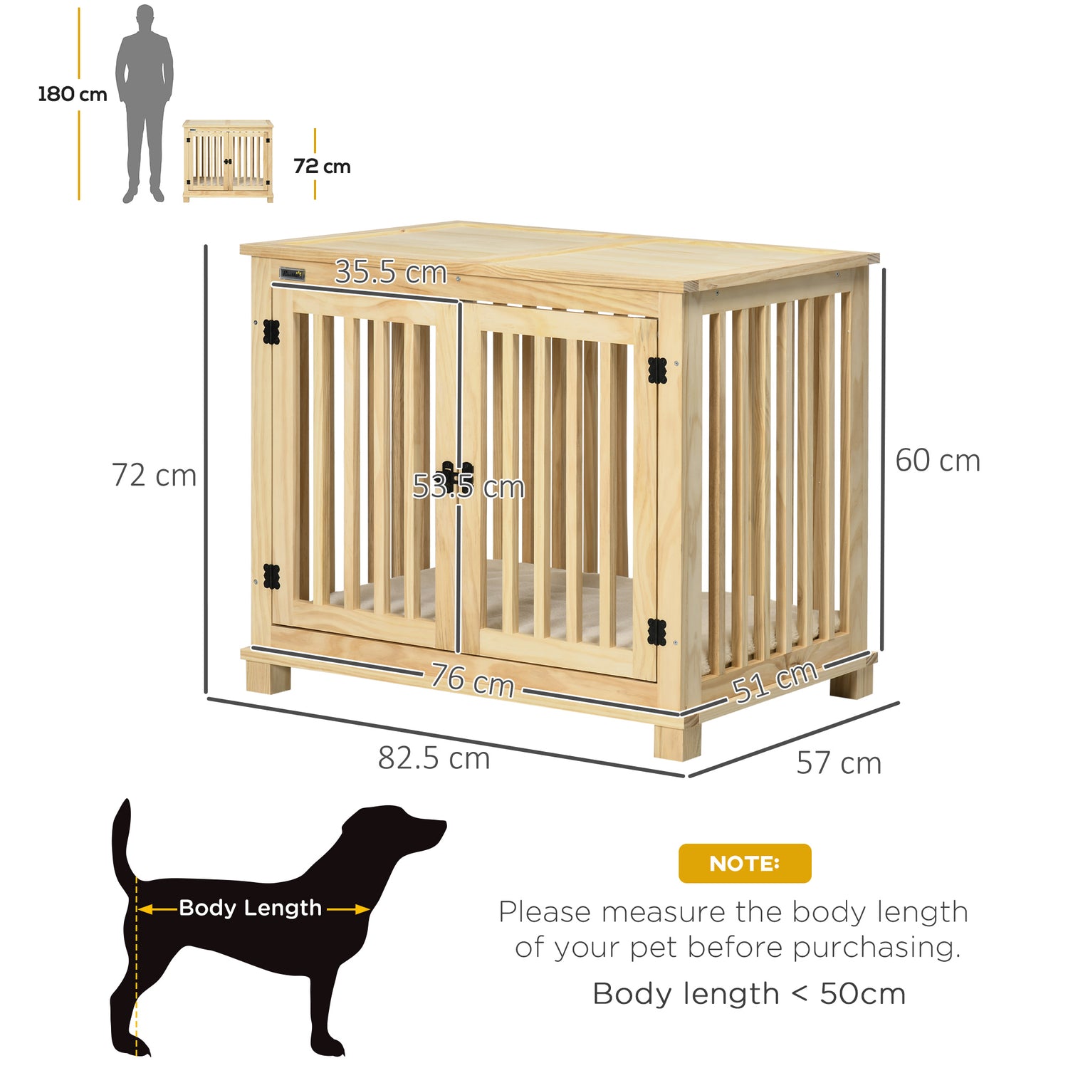 PawHut Wooden Dog Crate, with Double Doors, Cushion, for Medium Dogs - Natural Finish