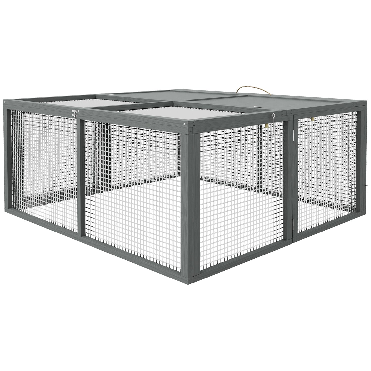PawHut Wooden Folding Rabbit Hutch, Grey