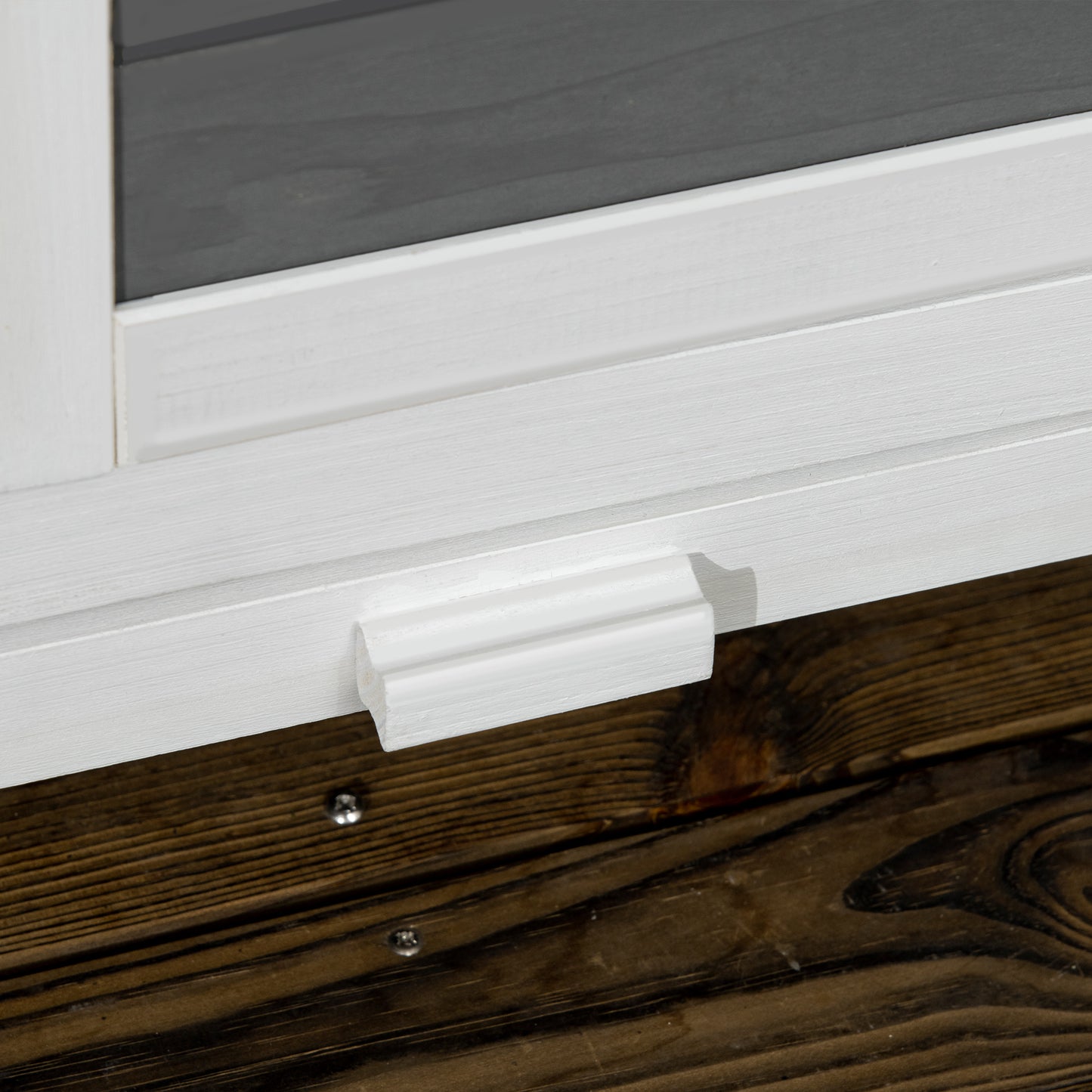 PawHut Wooden Rabbit Hutch with Wheels, Guinea Pig Cage, Small Animal House for Outdoor & Indoor with Slide-out Trays, 119 x 50.5 x 109cm, Grey