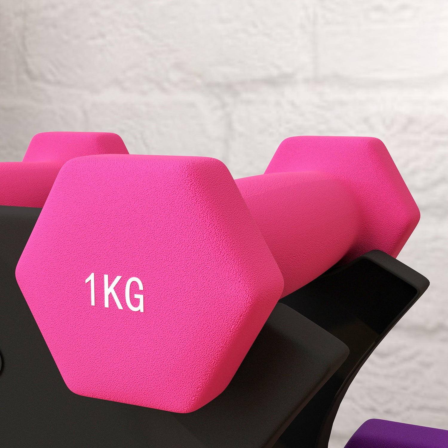 SPORTNOW 2 x 1kg, 2 x 2kg, 2 x 3kg Dumbbells Set with Dumbbell Rack, Hand Weights for Home Gym Training
