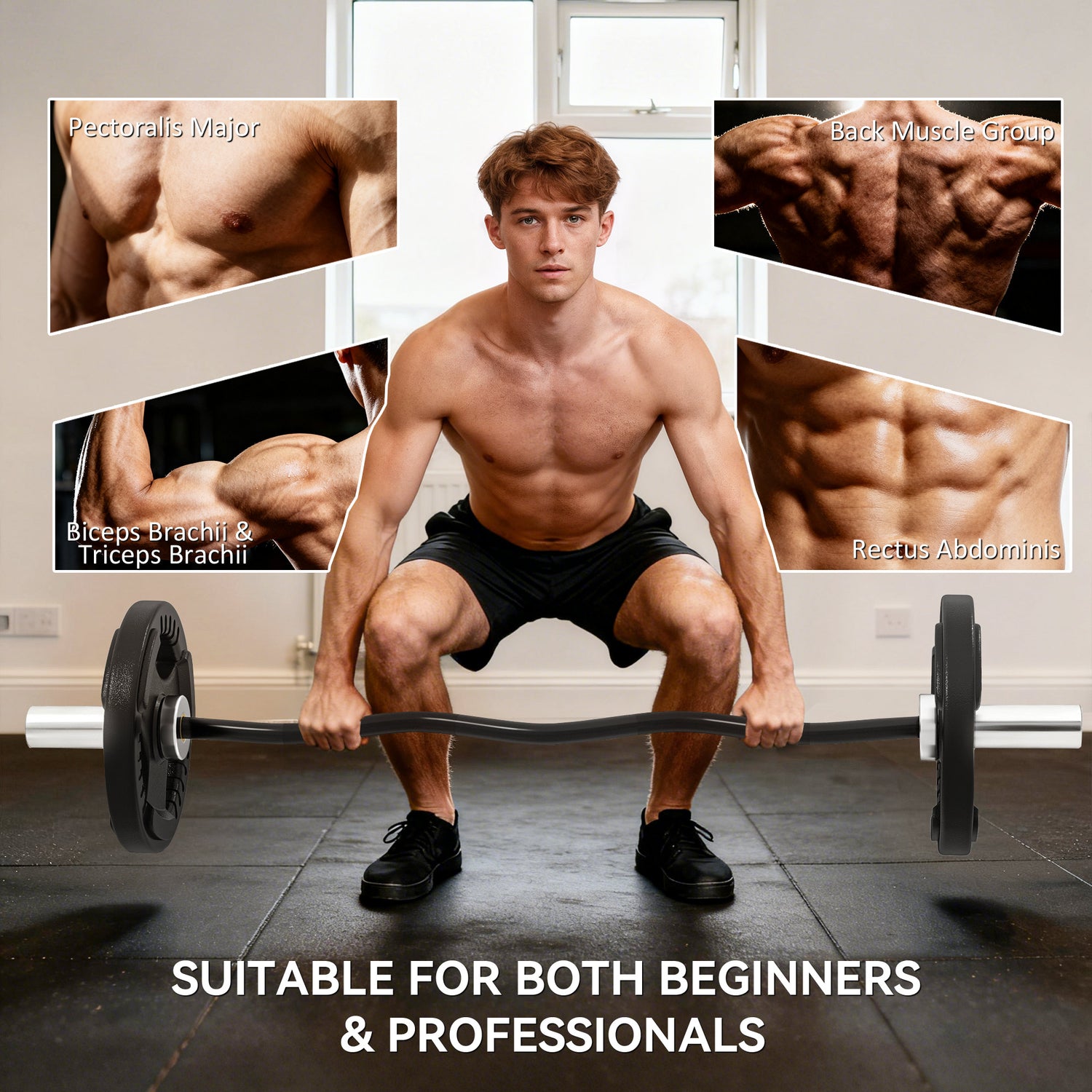 - Ergonomic w-shape design: The barbell bar's curved shaft keeps wrists and elbows in a natural angle, reducing strain and injury risk. It allows better isolation and control in biceps curls for safer, more effective arm training