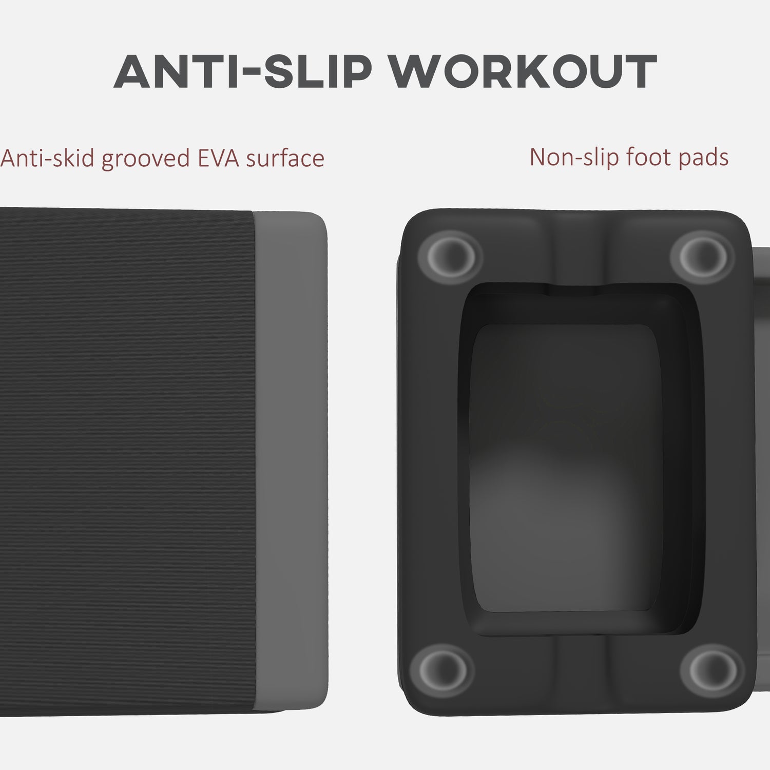 Step up your fitness with the SPORTNOW exercise stepper for home and gym! Adjust between three heights (10.5 cm, 15.5 cm or 20.5 cm) to suit your level. Great for step-ups, squats, push-ups and more to burn calories and build muscle. The anti-skid grooved EVA surface and stable base with non-slip footpads ensure safe workouts. Easily move and store it to save space. Transform any corner into a mini fitness centre at home, the office or anywhere!