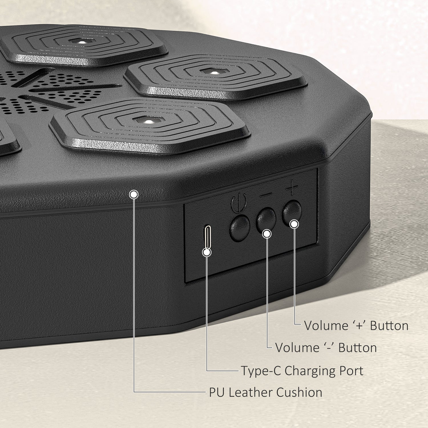 Unleash your inner boxer with the SPORTNOW Music Boxing Machine! Dance to the beat as light percussion points sync with your favourite tunes via Bluetooth, lighting up to guide your rhythm. Hang it anywhere with ease and punch your way to fun fitness, wrapped in PU leather. Great for lively offices or home gyms!