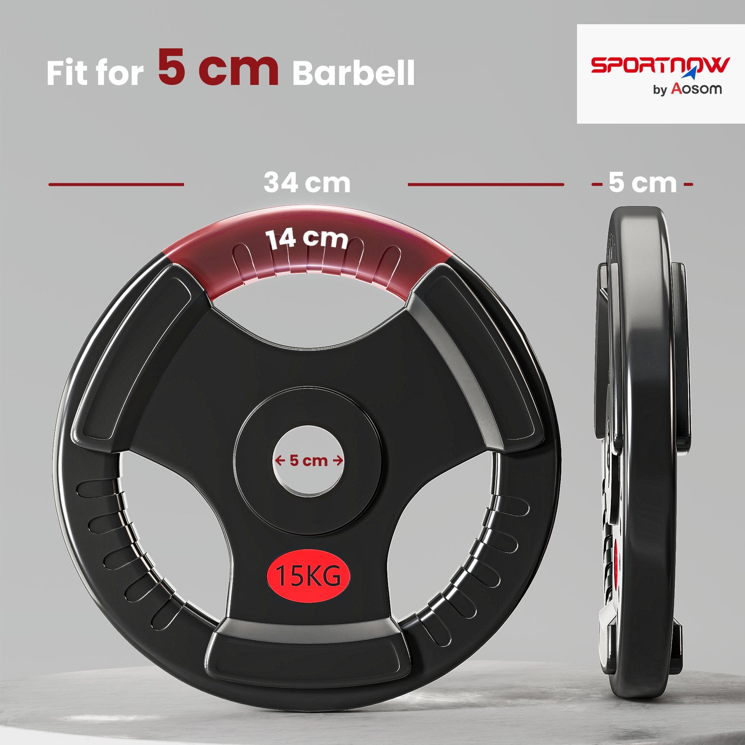 SPORTNOW Olympic Weight Plates, 2x15kg Pair with Tri-Grips for Weightlifting & Strength Training, Home Gym Fitness Workout, Black