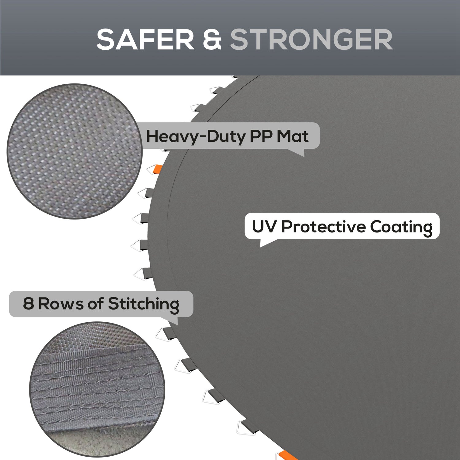 - Safe and strong: This 12ft trampoline replacement mat features eight rows of stitching, ensuring sturdiness. Its UV-resistant coating keeps the mat in top shape, suitable for daily use.