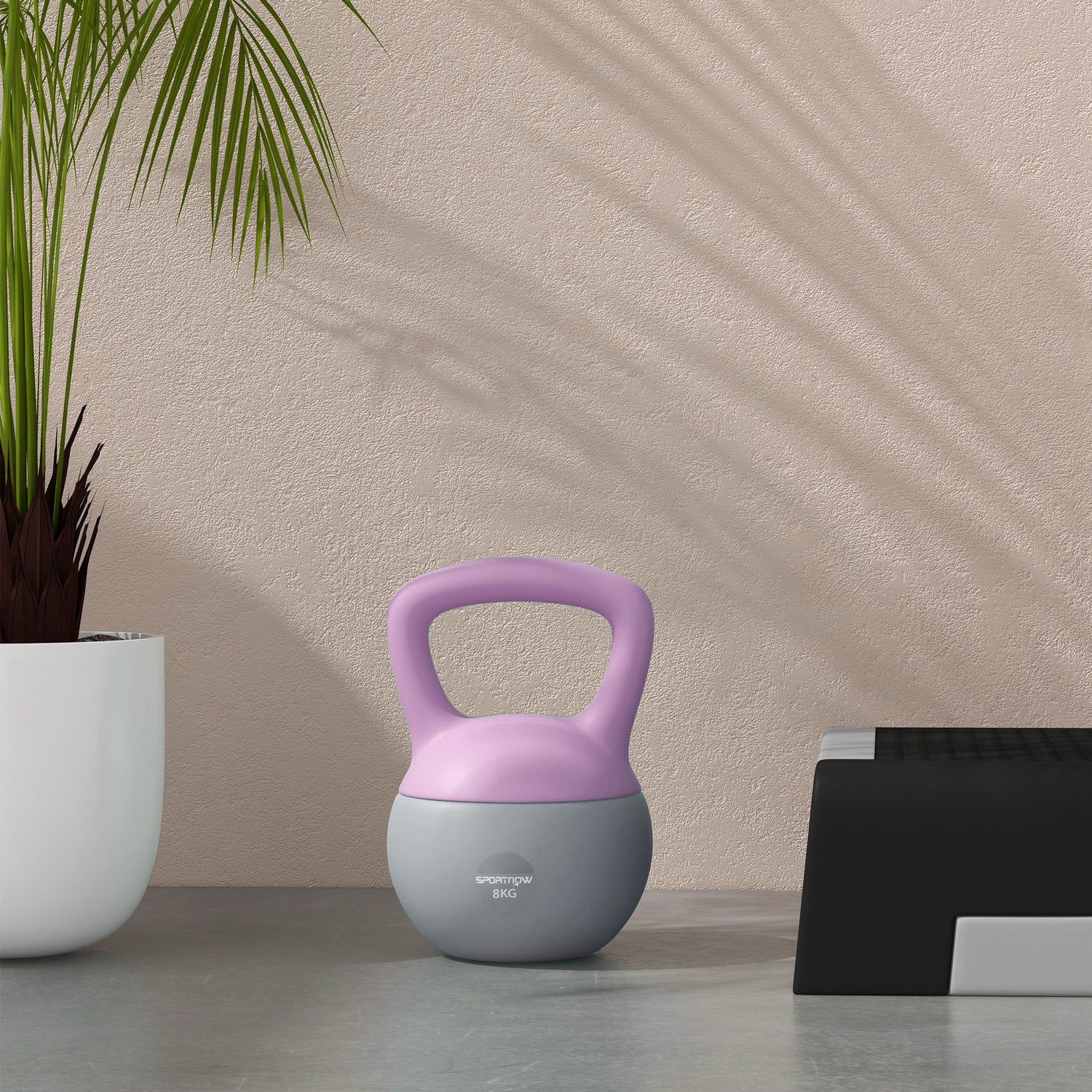 SPORTNOW Soft Kettlebell, 8kg Kettle Bell with Non-Slip Handle for Home Gym Weight Lifting and Strength Training, Purple and Grey