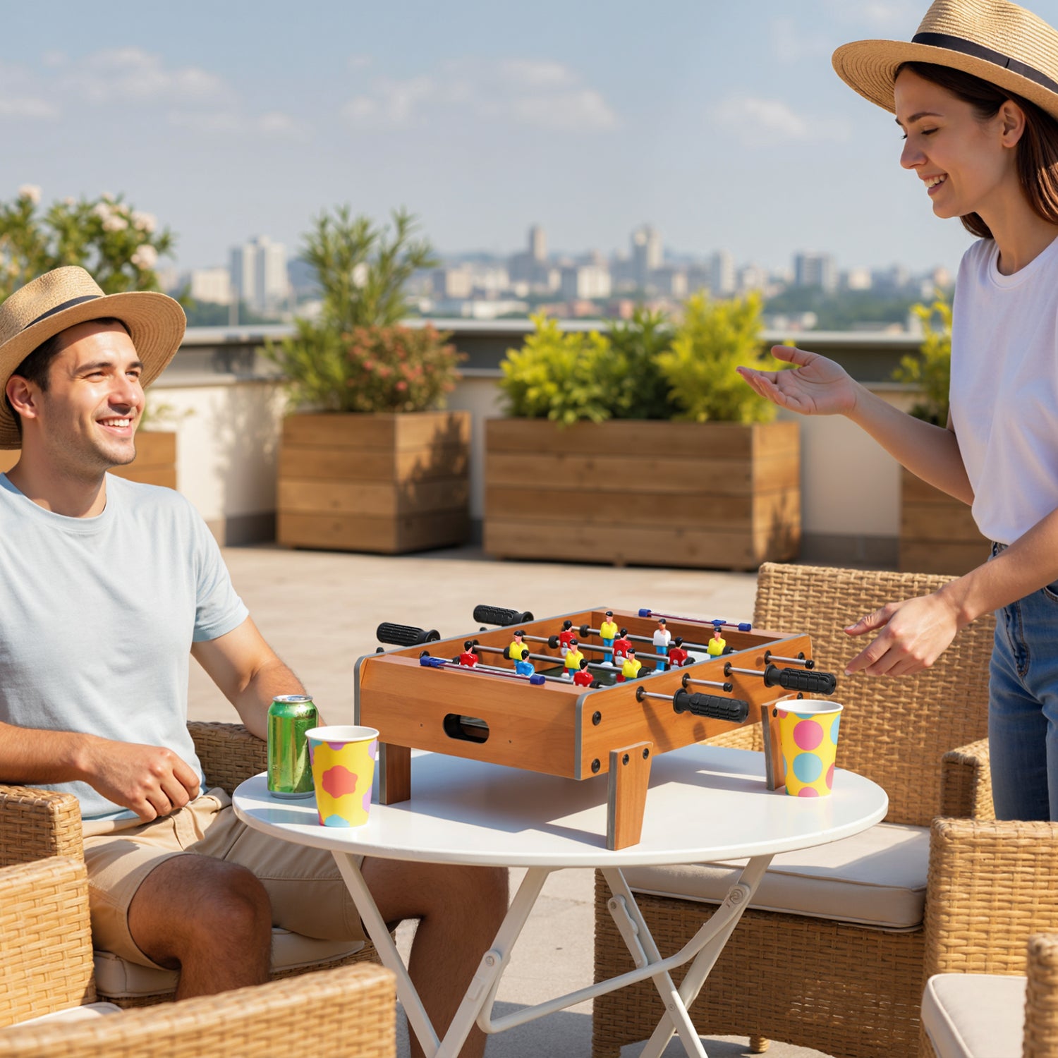 - Table-top design, flexible fun: This mini foosball table sits easily on desks, coffee tables or sofas, making quick set-up simple for spontaneous games in dorms or office lounges