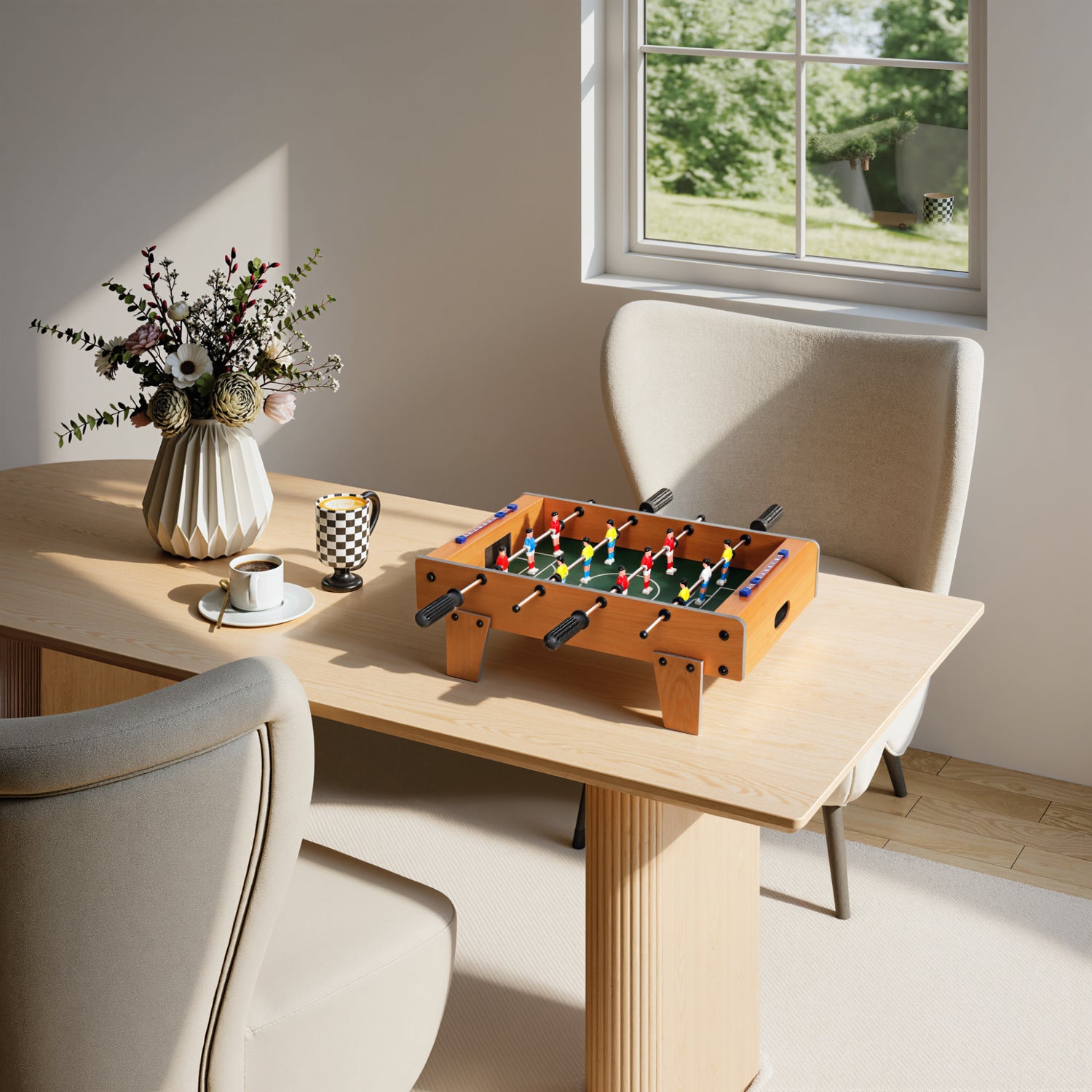 SPORTNOW Table-top Football Table, 20" Compact Foosball for Kids & Adults, Stainless Steel Rods, All-Inclusive Set, Nature Wood Finish