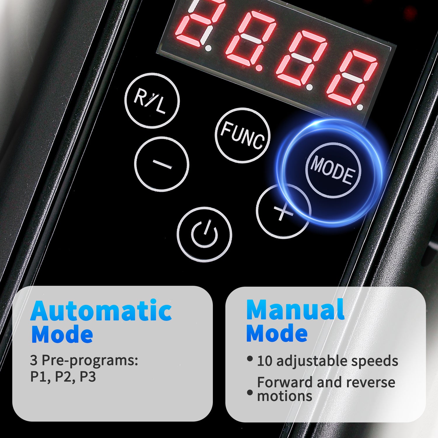 - Choose from three automatic settings (P1, P2, P3), or take full control with manual mode with 10 speed levels and personalised direction