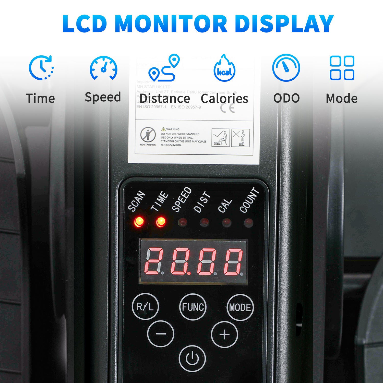 - LCD monitor displays comprehensive workout data