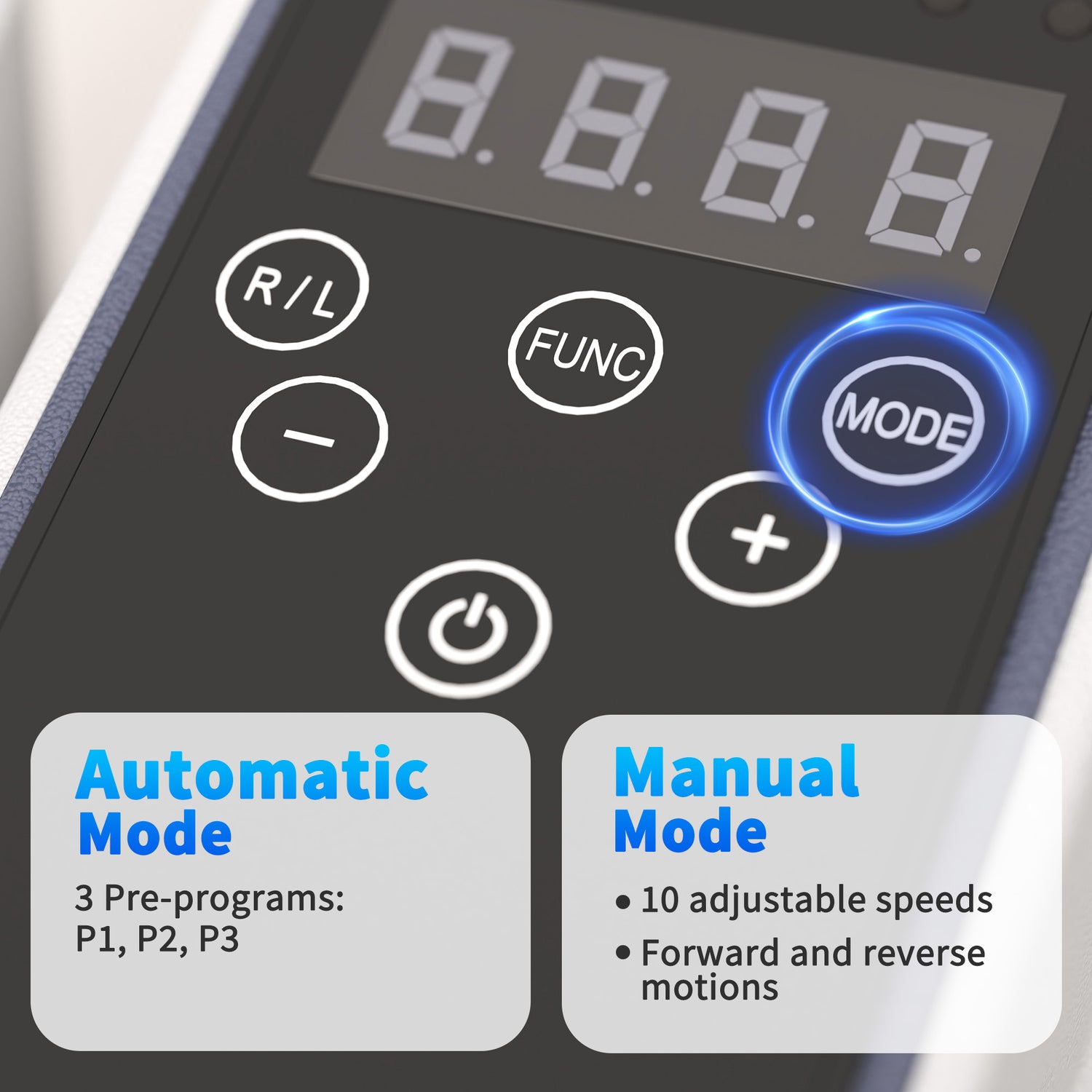- Auto & manual modes: Choose from three automatic settings (P1, P2 and P3) for effortless operation. Or take full control with manual mode: with ten adjustable speeds, you can easily customise both direction and speed for a personalised experience.