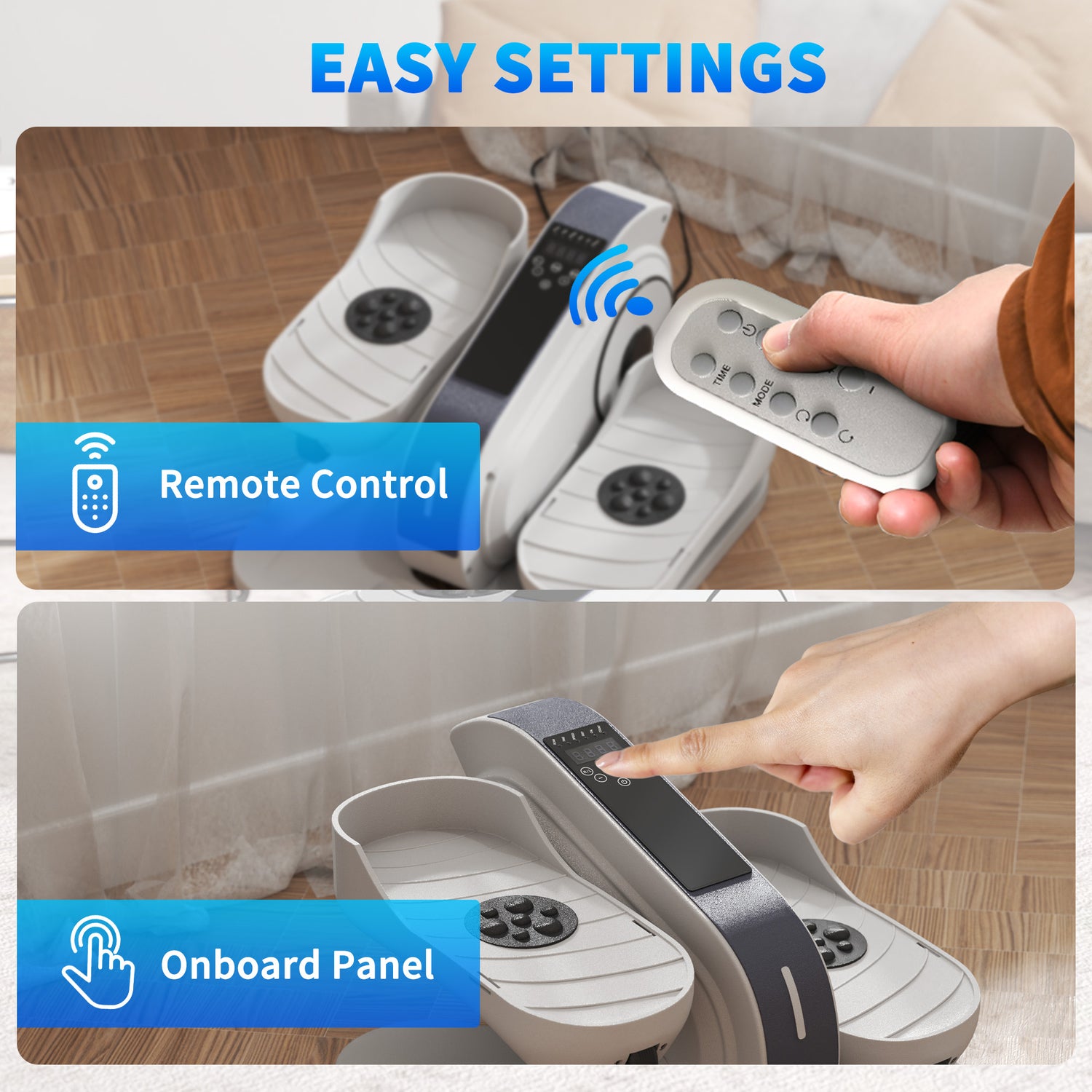 - Easy settings: Easily adjust your workout intensity on this under desk foot exerciser using either the handy remote control or the onboard control panel to suit your fitness levels.