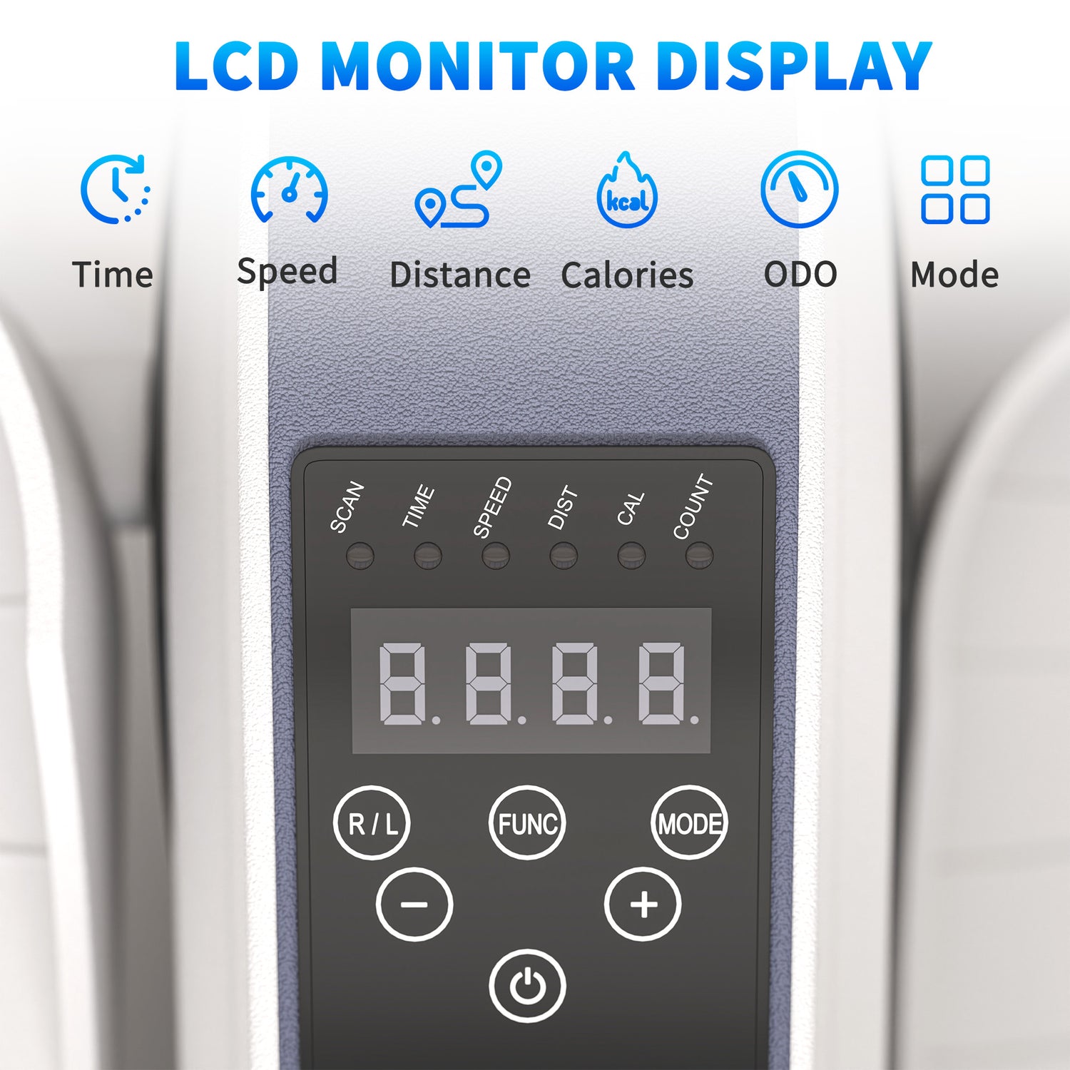 - Real-time progress tracking: Keep track of your fitness goals with the LCD monitor on this under desk pedal exerciser that displays time, speed, distance, calories, ODO and programs.