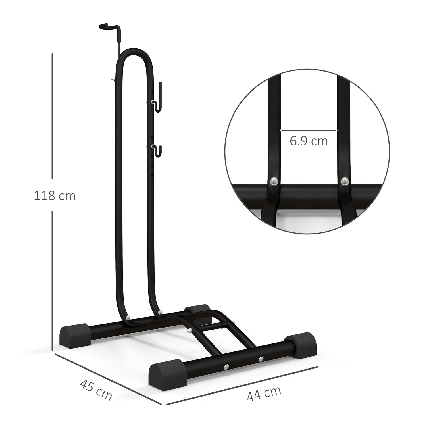 Discover the convenience of parking your bike either vertically or horizontally with the SPORTNOW Bike Rack. Designed to accommodate almost all bikes, from 6" to 28" wheel sizes and 700c bikes, this bicycle stand ensures a snug fit with adjustable hooks. Crafted with a steel frame and rubber-protected feet, it's the versatile solution for bike storage rack needs in your garage. Say goodbye to clutter with this sleek bicycle rack.