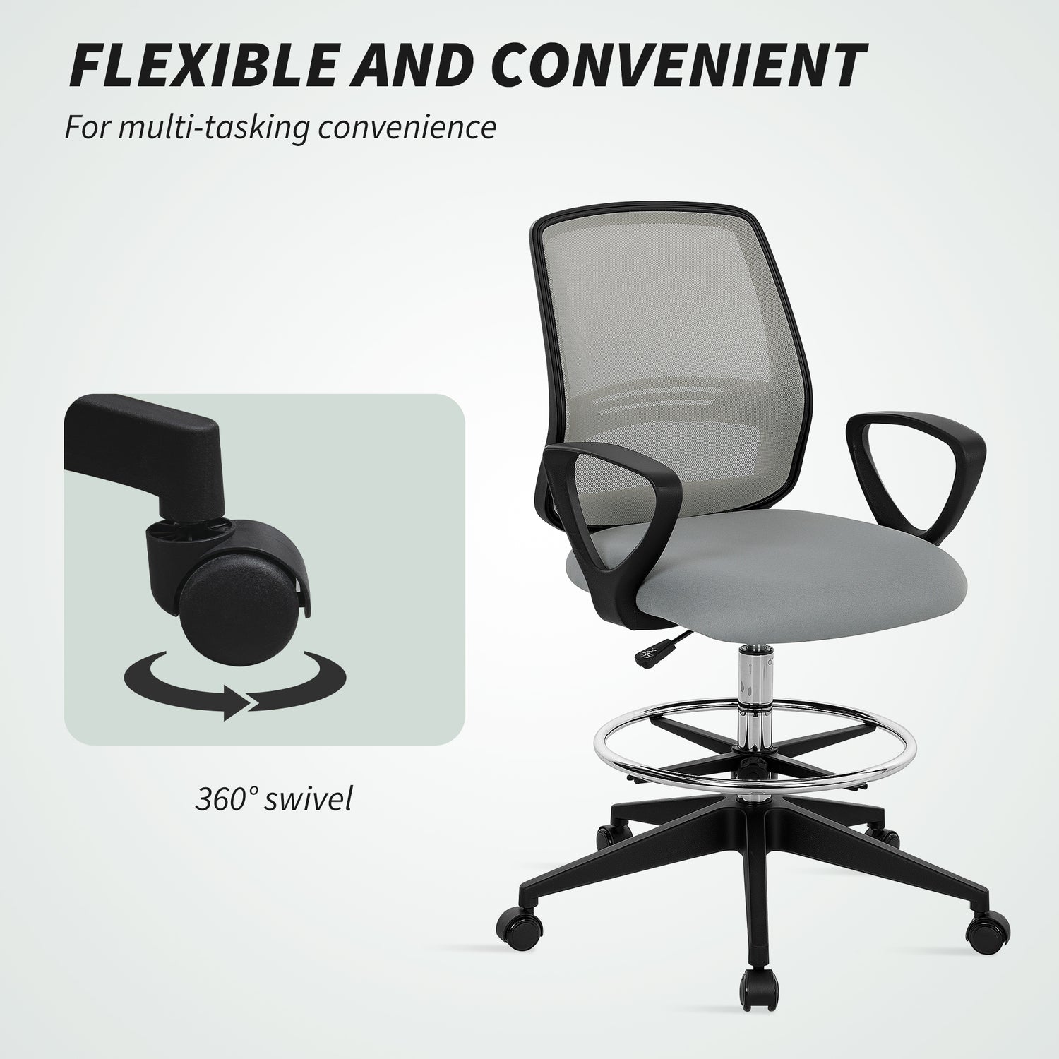 Vinsetto 100-120cm Draughtsman Office Chair, with Footrest - Light Grey