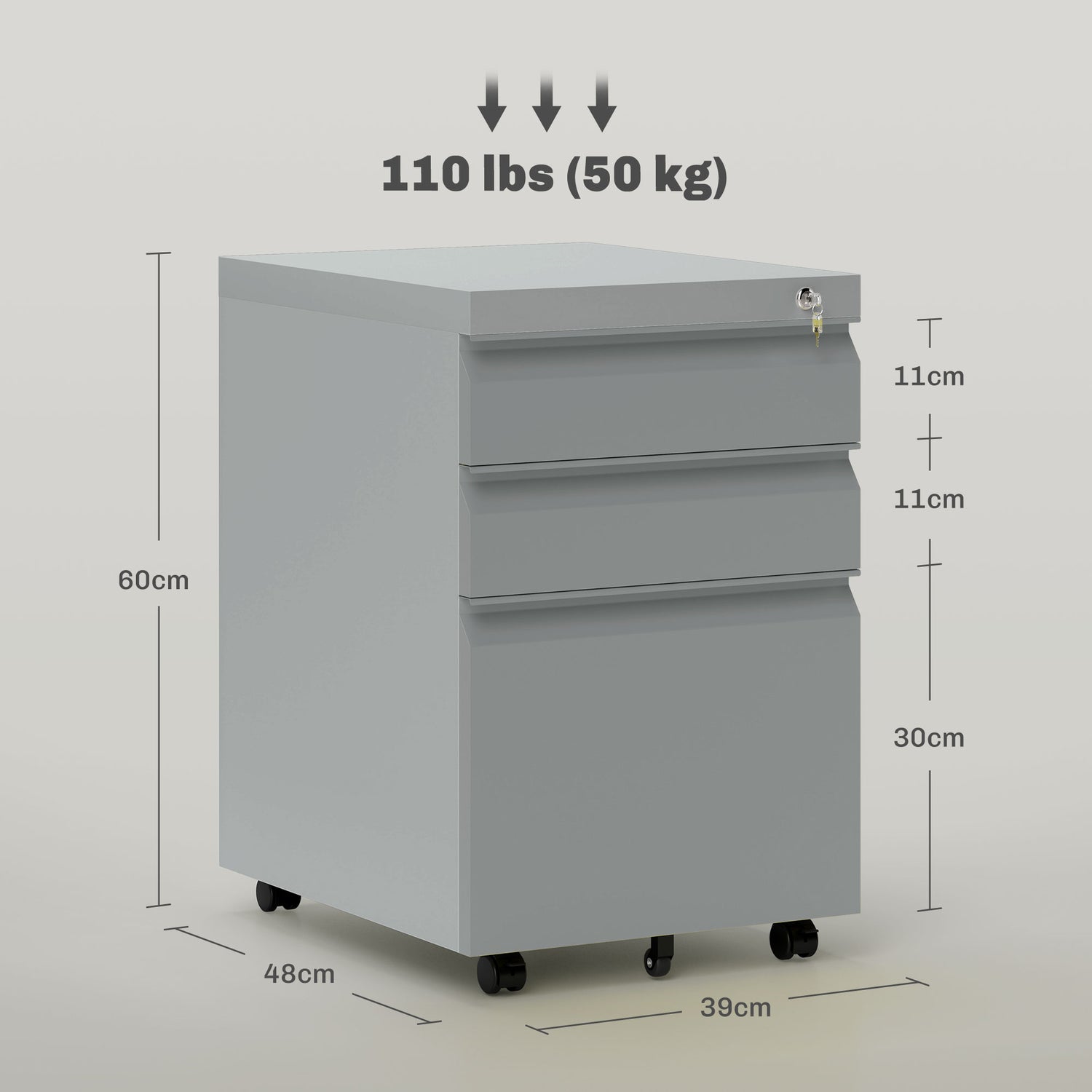 - LOCKABLE: Central locking system keeps all three drawers securely closed at once. Keeps confidential work away from prying eyes.