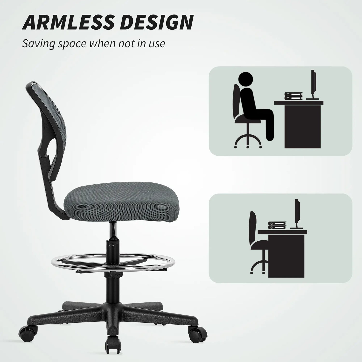 - Armless design: This mesh office chair offers more room for you when seated - more freedom. Also easy to stand up and sit down on.