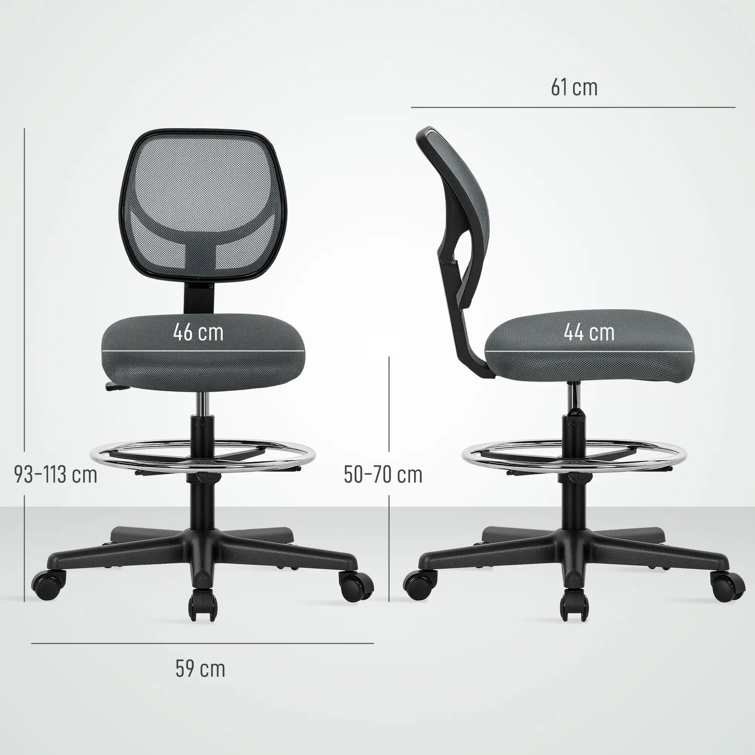 Vinsetto Ergonomic Mesh Standing Desk Chair with Adjustable Footrest Ring and Seat Height Charcoal Grey