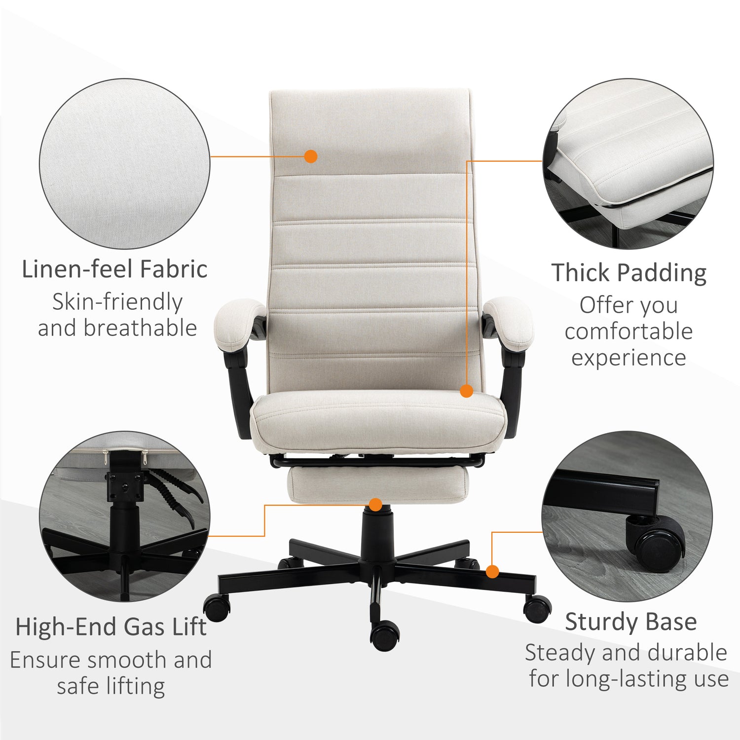 Vinsetto High-Back Home Office Chair, Linen Swivel Reclining Chair with Adjustable Height, Cream White