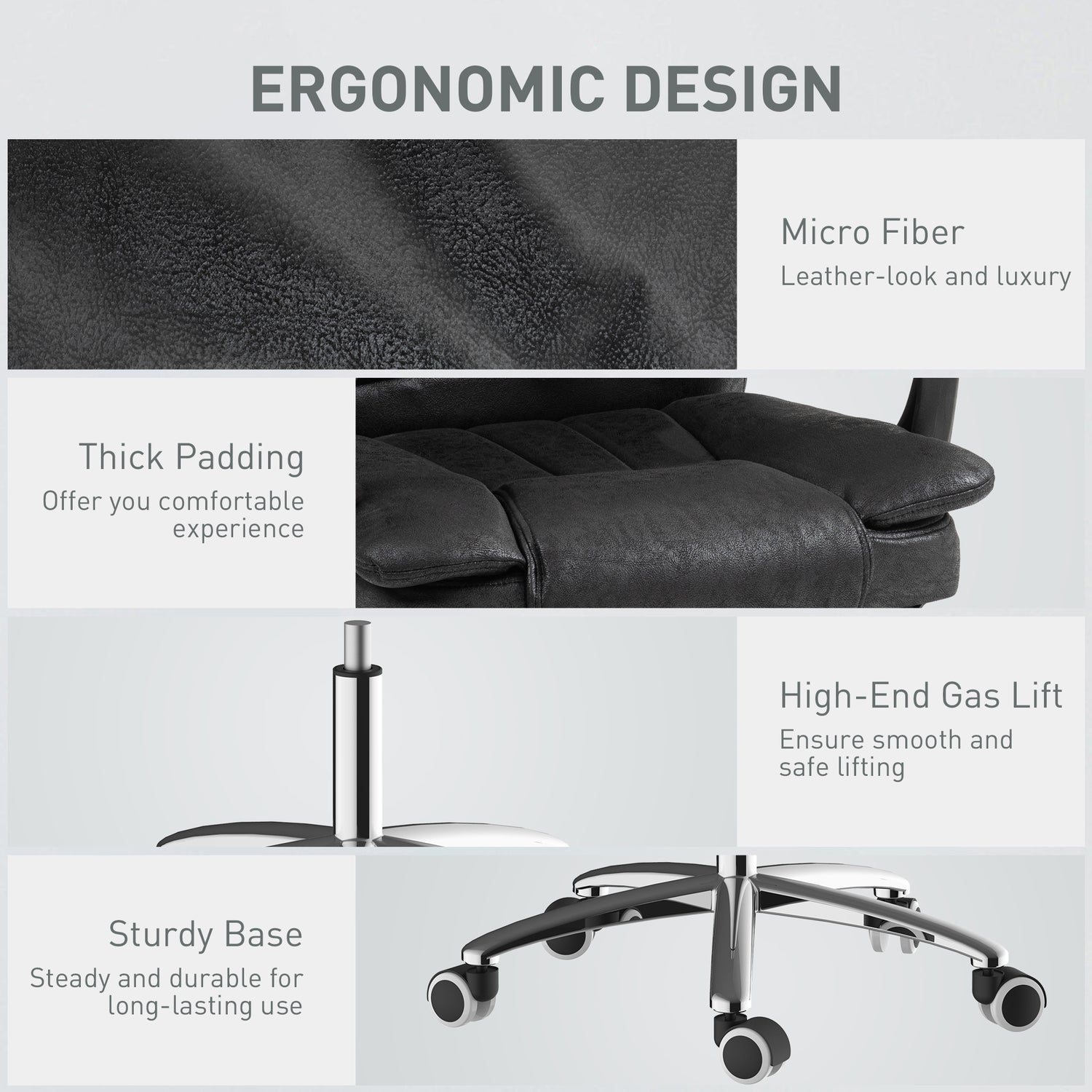 - Extra luxe: Makes a statement, as well as keeps you very comfortable. Wrapped in microfibre upholstery with thick padding, it offers great breathability between your skin and this executive office chair.