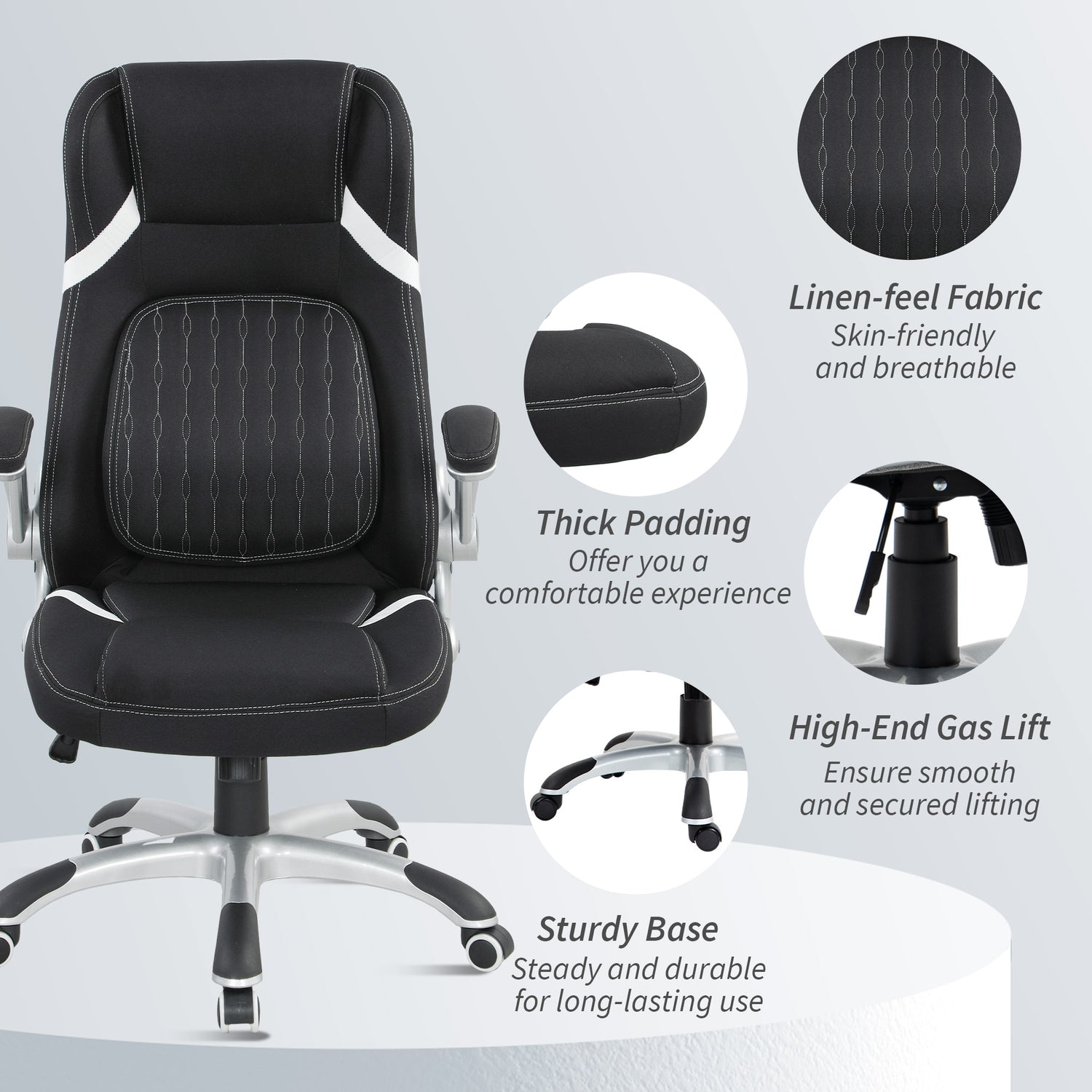 Vinsetto Linen-Look Office Chair, with Adjustable Height and Tension - Black