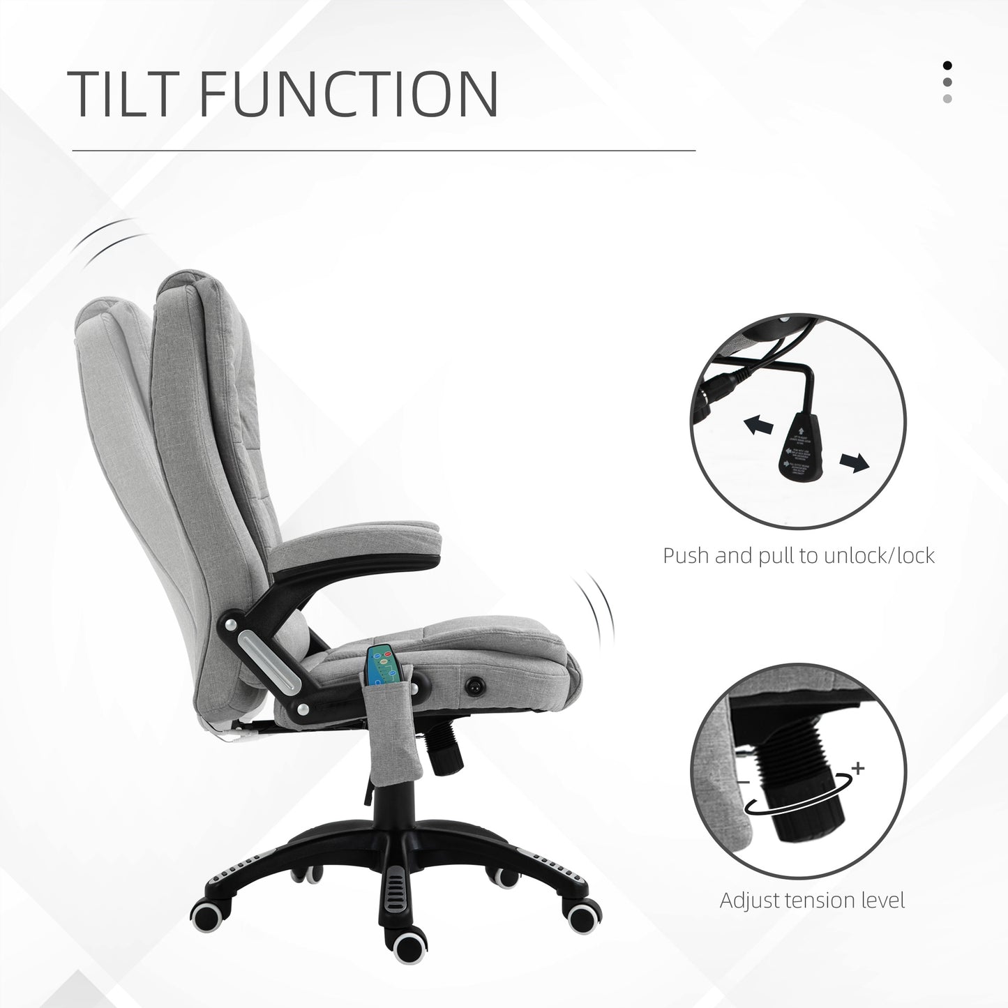 Vinsetto Massage Office Chair Recliner Ergonomic Gaming Heated Home Office Padded Linen-Feel Fabric & Swivel Base Light Grey