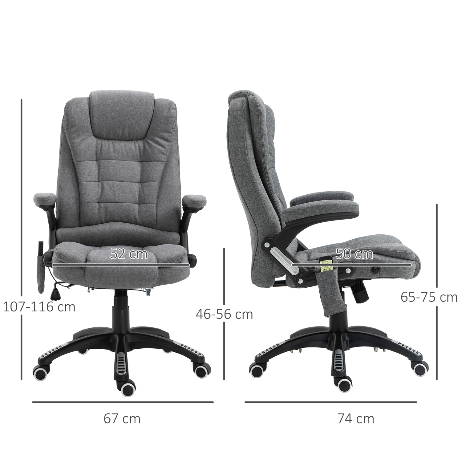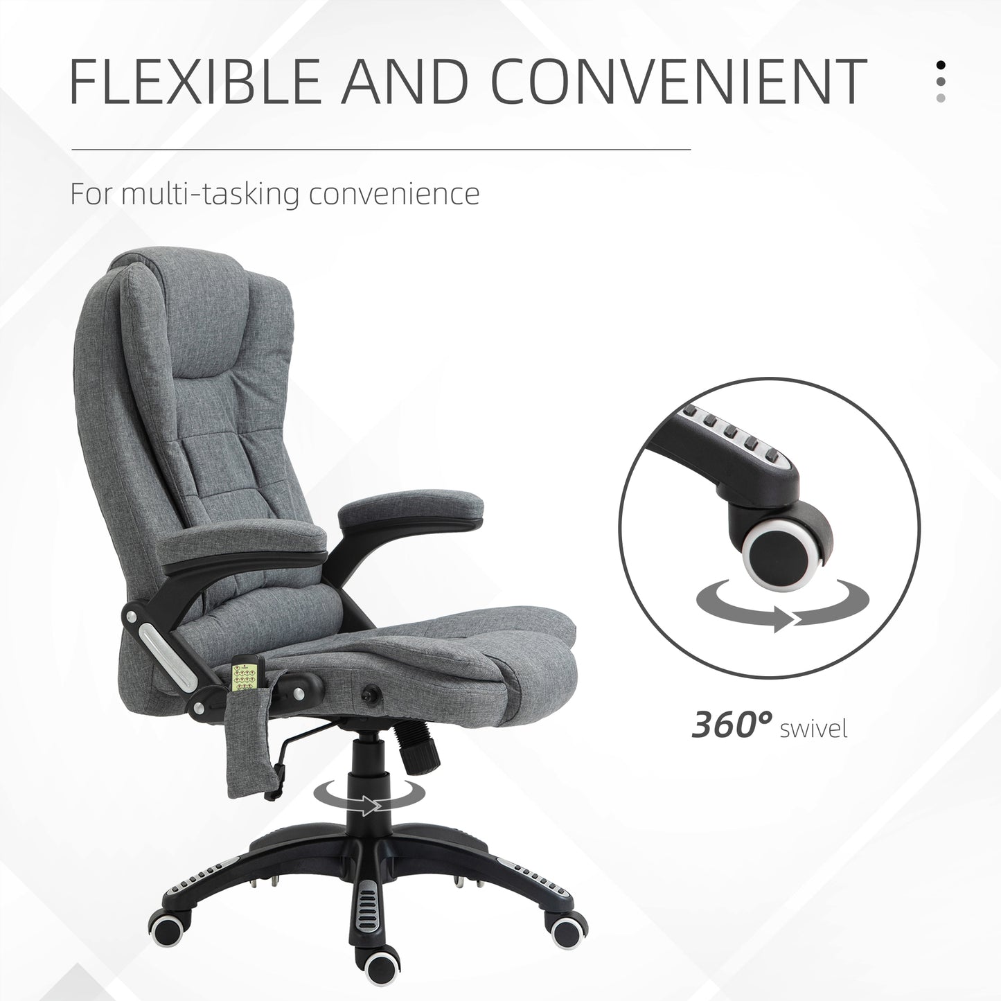 Vinsetto Massage Recliner Chair Heated Office Chair with Six Massage Points Linen-Feel Fabric 360° Swivel Wheels Grey