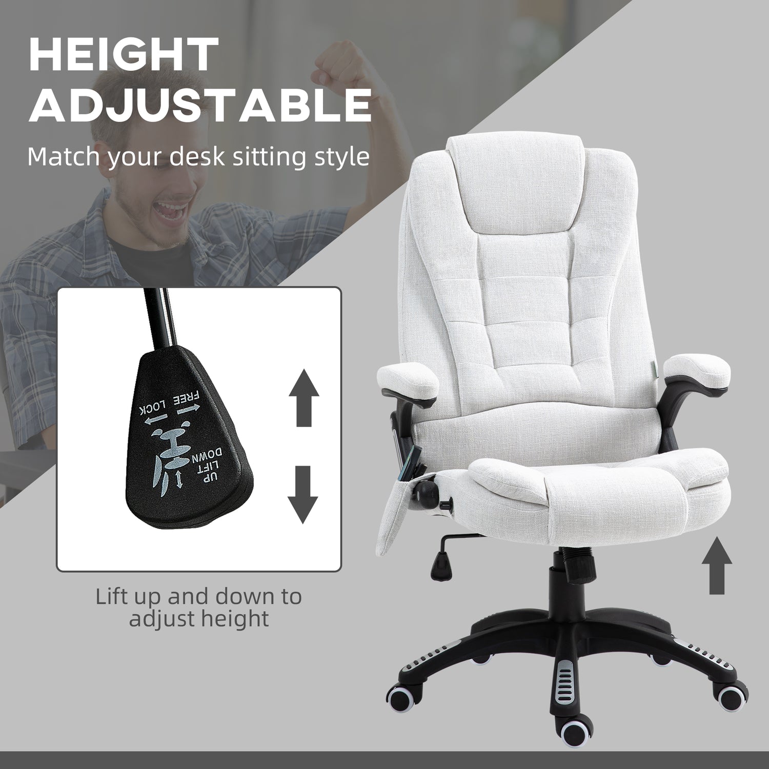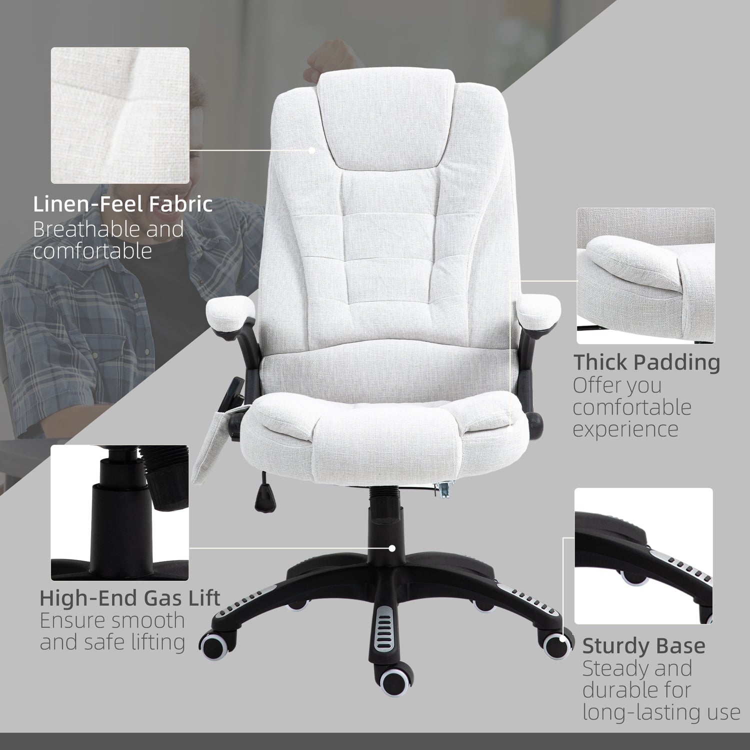 Vinsetto Massage Recliner Chair Heated Office Chair with Six Massage Points Linen-Feel Fabric 360° Swivel Wheels Cream White